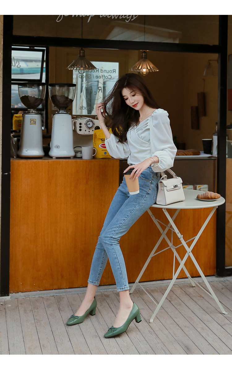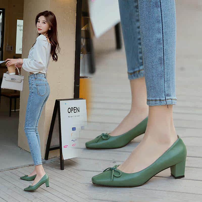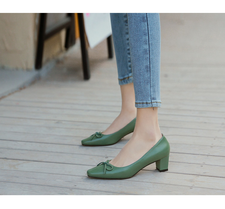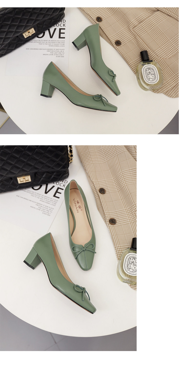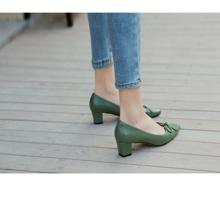 Зеленая обувь на высоком каблуке с бантиком, коллекция 2021