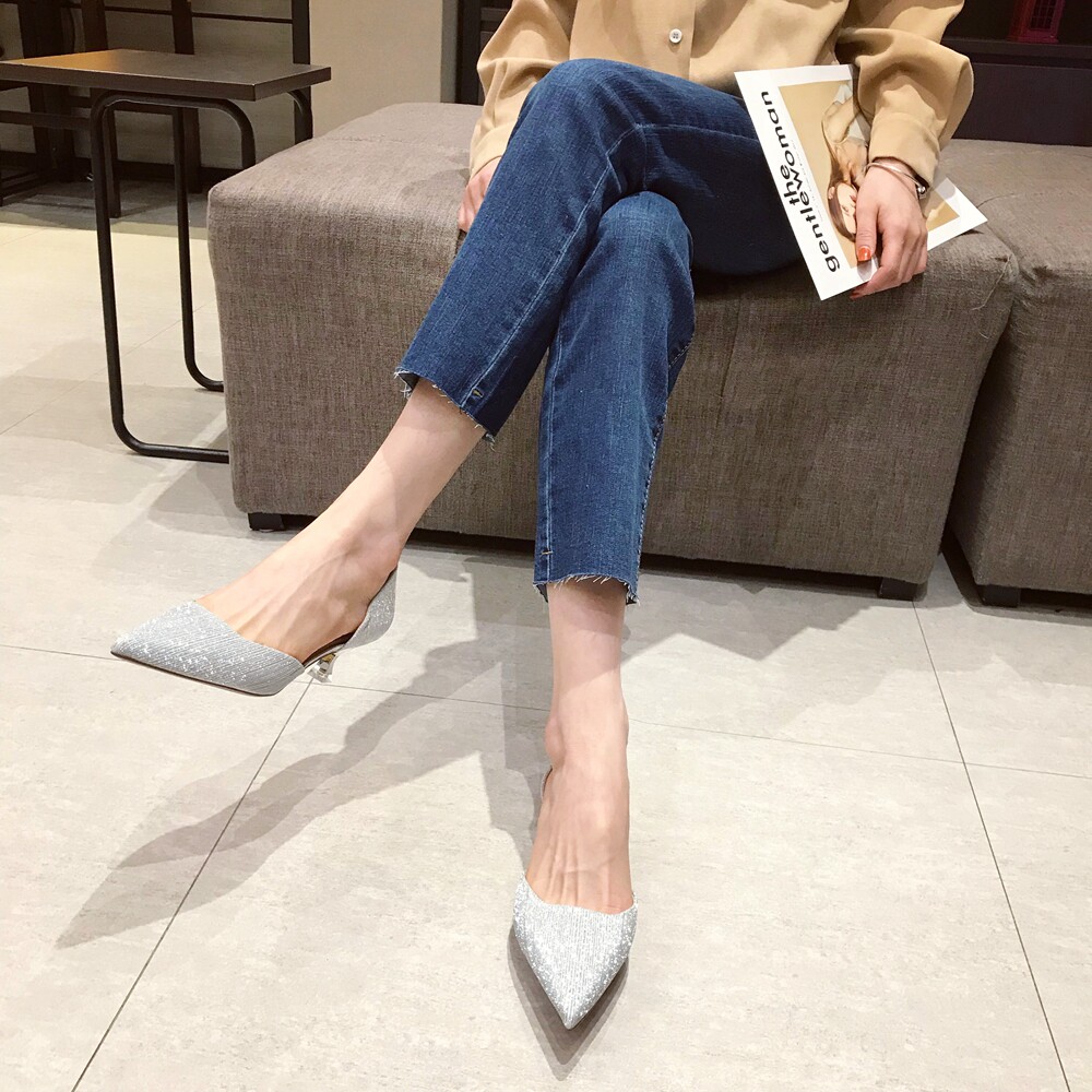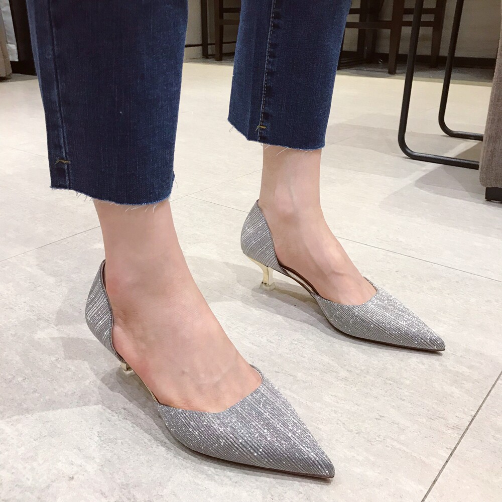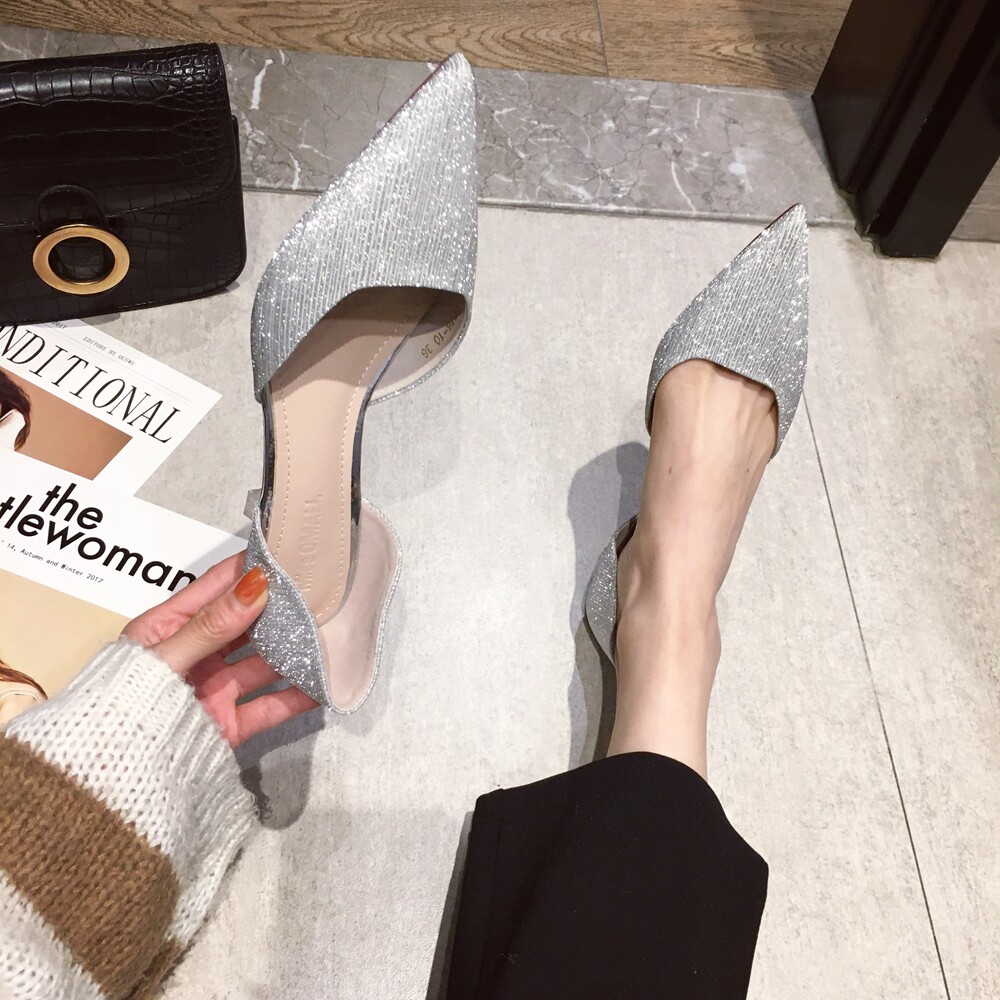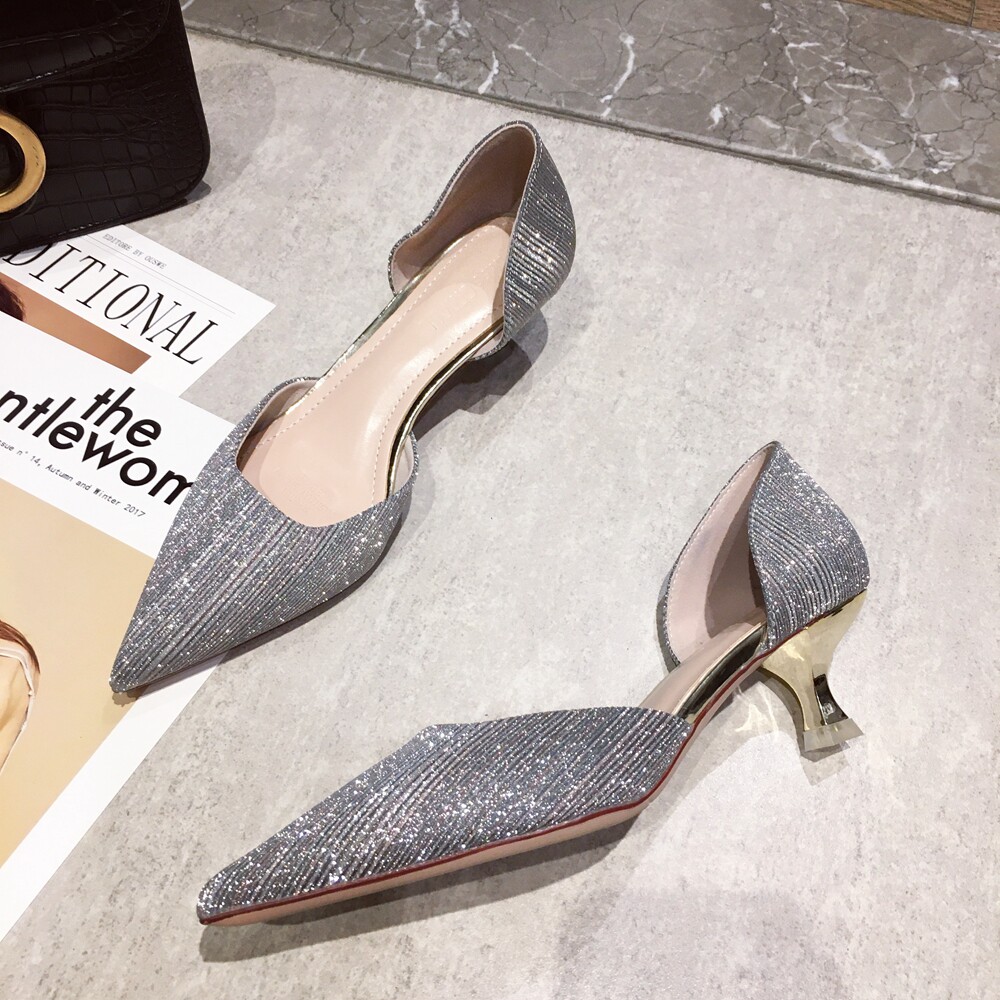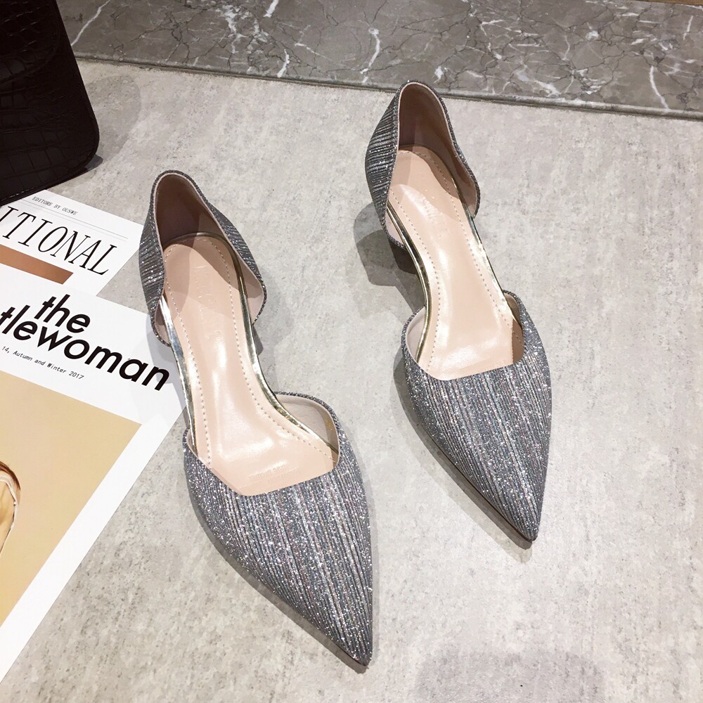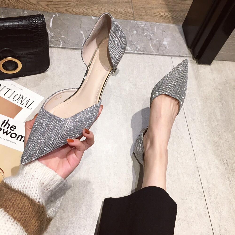 Свадебные туфли для невесты, весенние универсальные серебряные блестки для ногтей, обувь на высоком каблуке с заостренным носом, коллекция 2021, тренд сезона, для подружки невесты