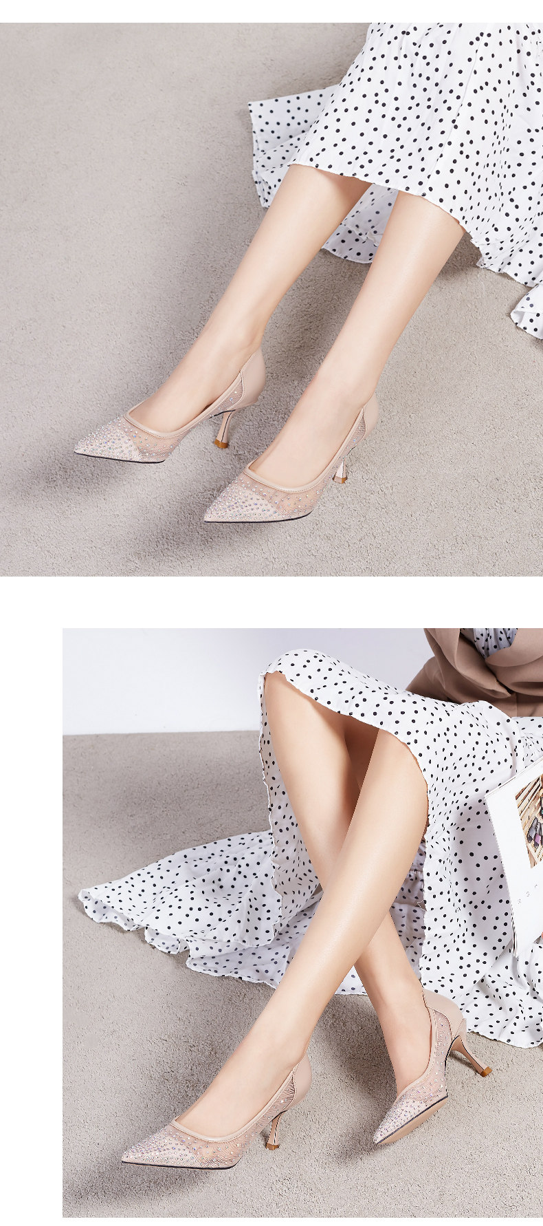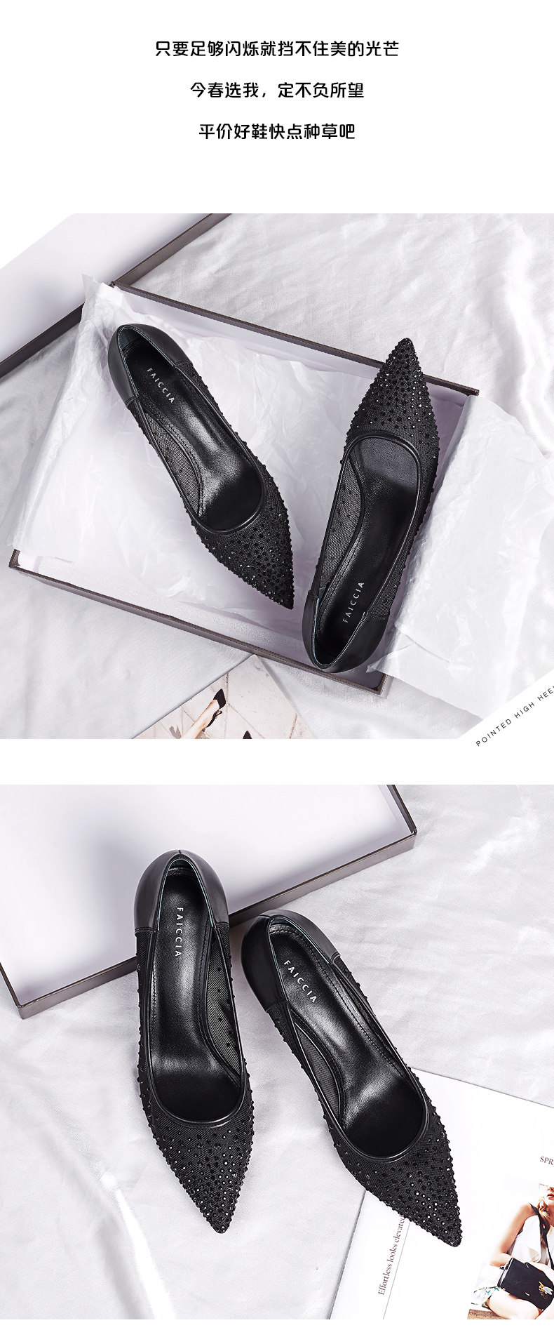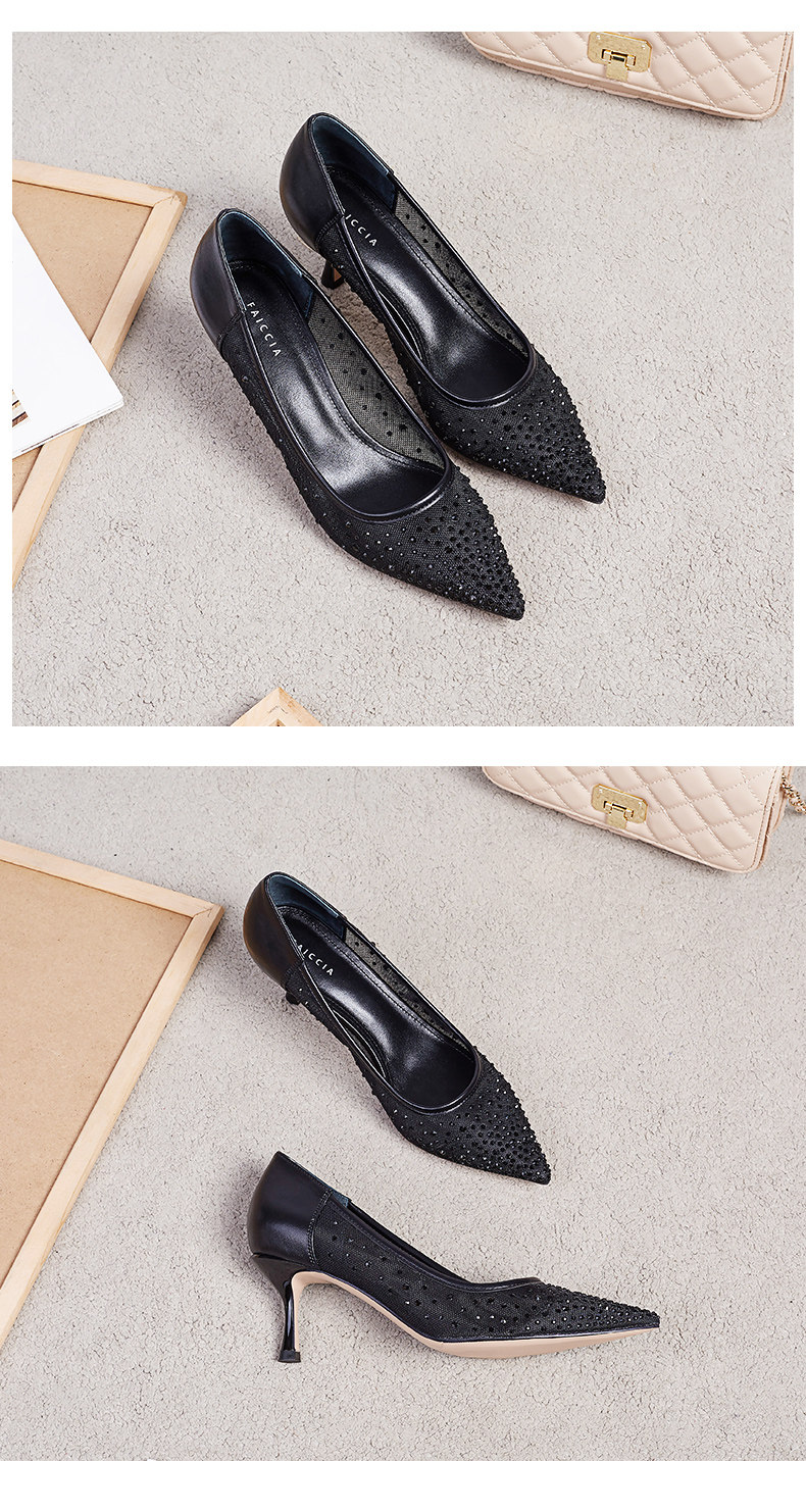 Весенняя свежая обувь с заостренным носом на высоком каблуке с низким вырезом, коллекция 2021, тренд сезона