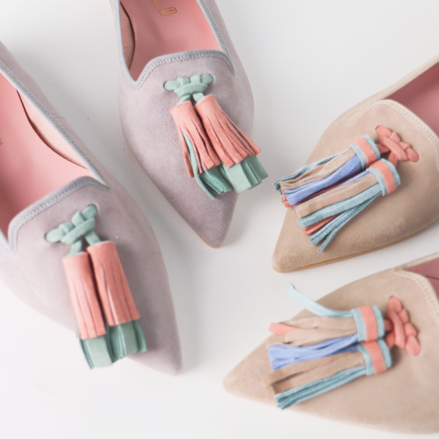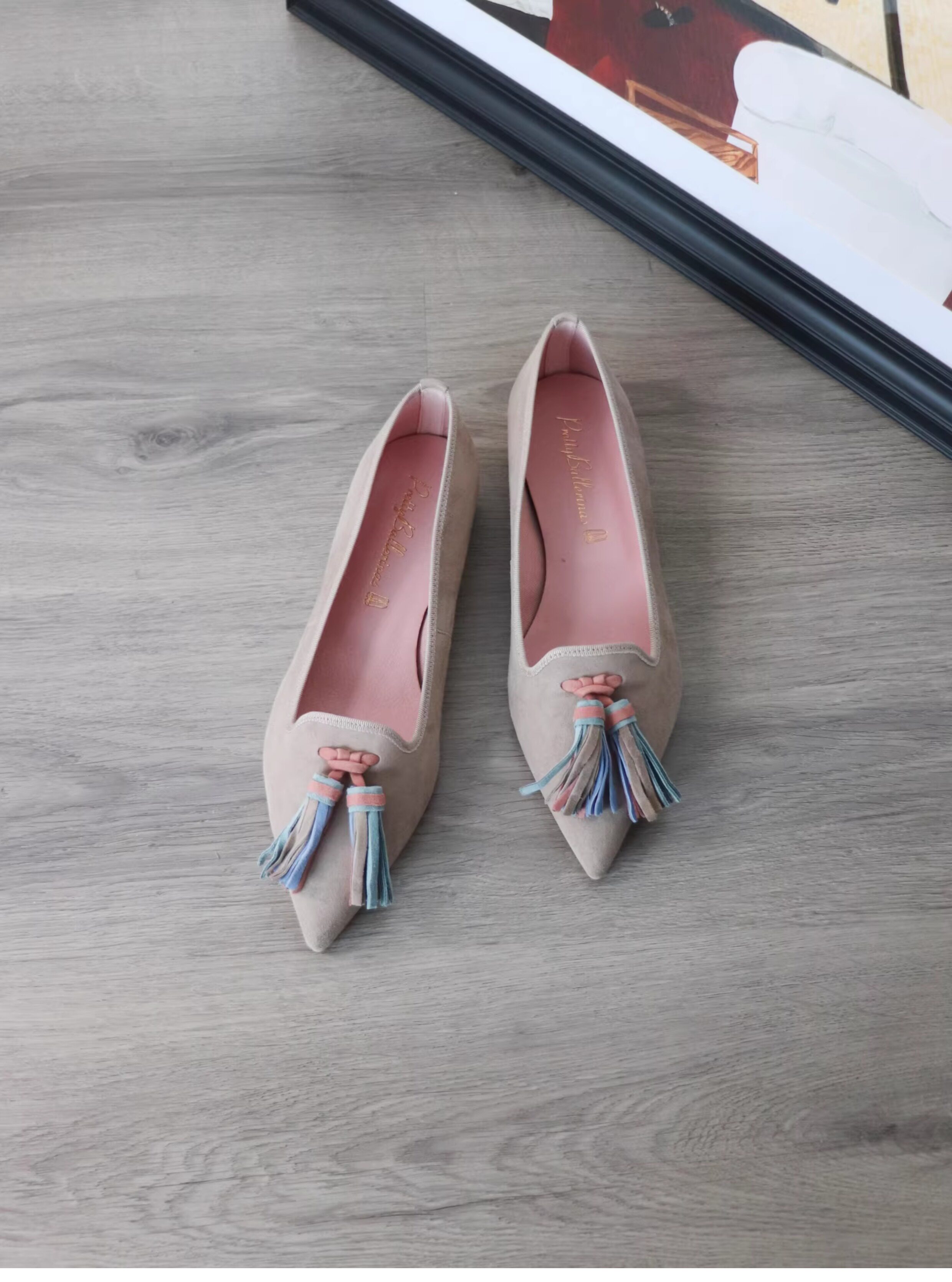 Оригинал 2160!Универсальные замшевые лоферы с острым носком и кисточками Spanish Pretty Ballerinas