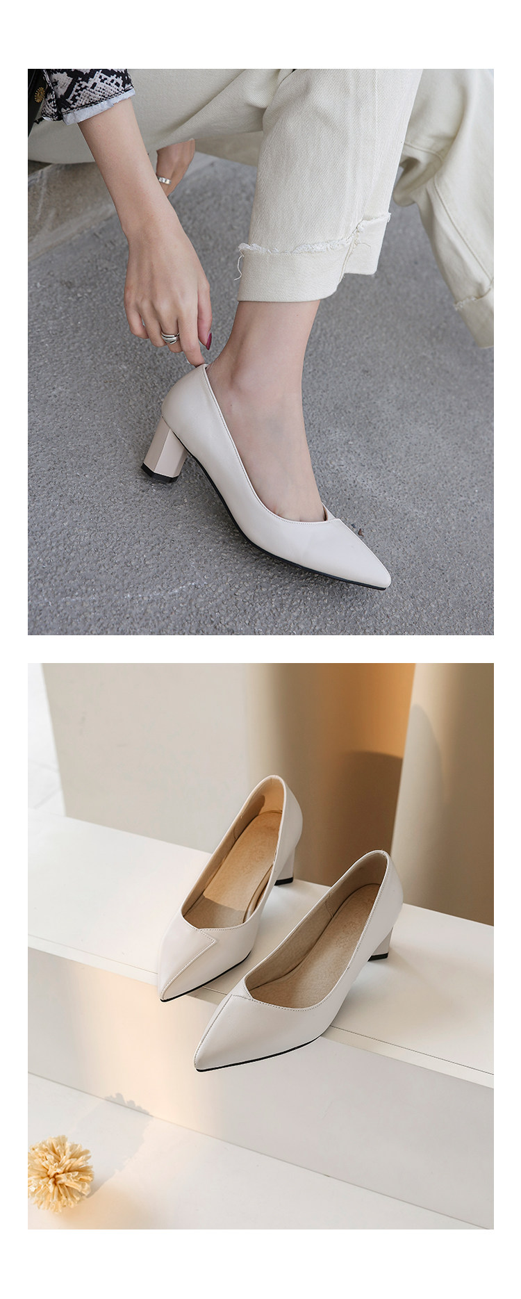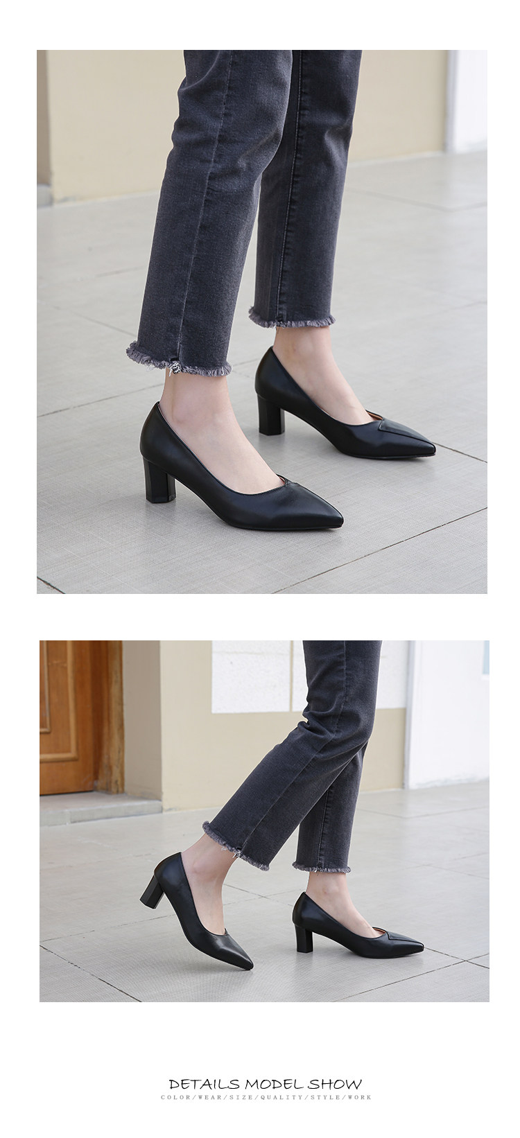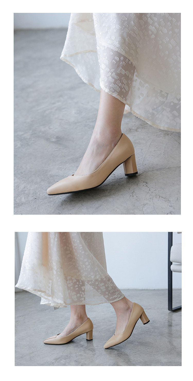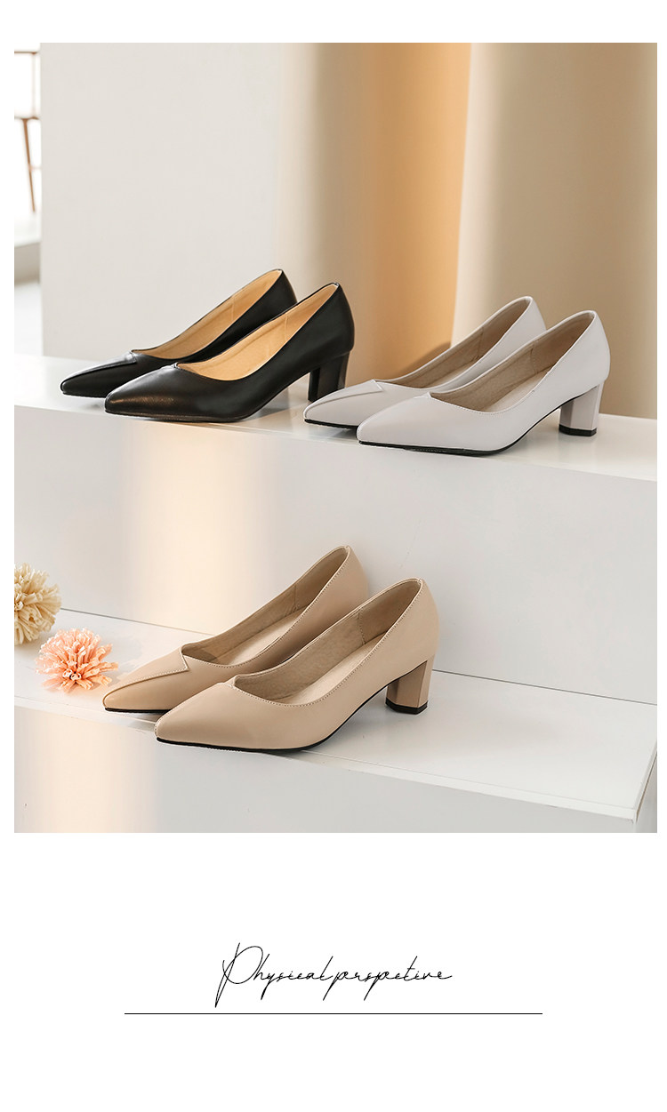 Простые и повседневные тонкие заостренные ноги с толстой каблукой.