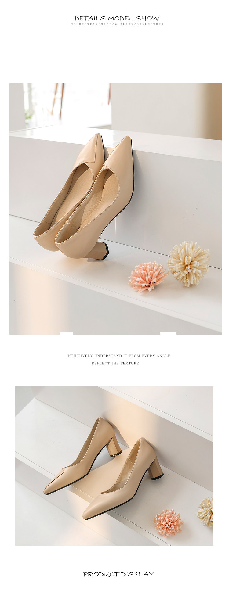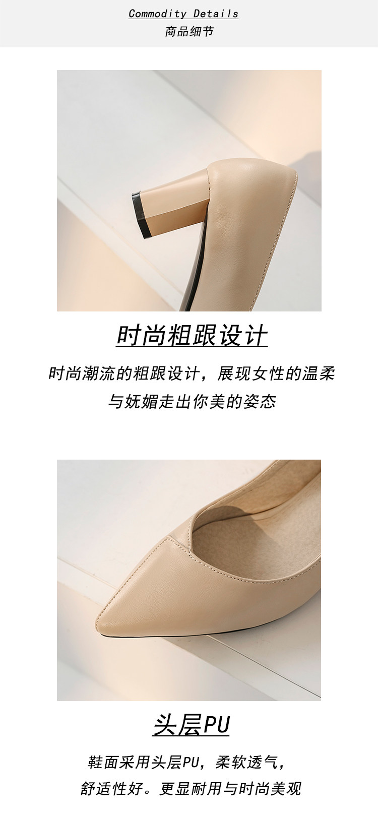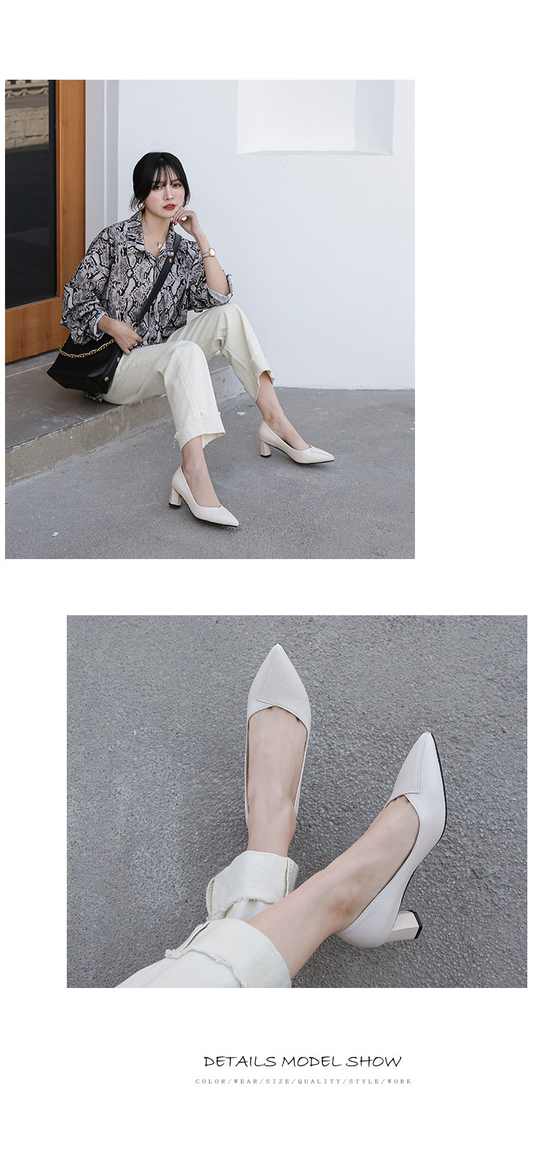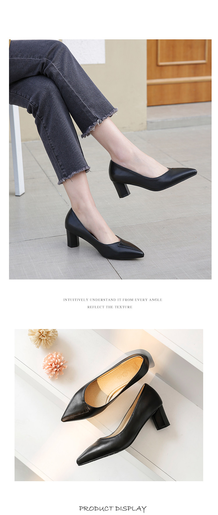 Простые и повседневные тонкие заостренные ноги с толстой каблукой.
