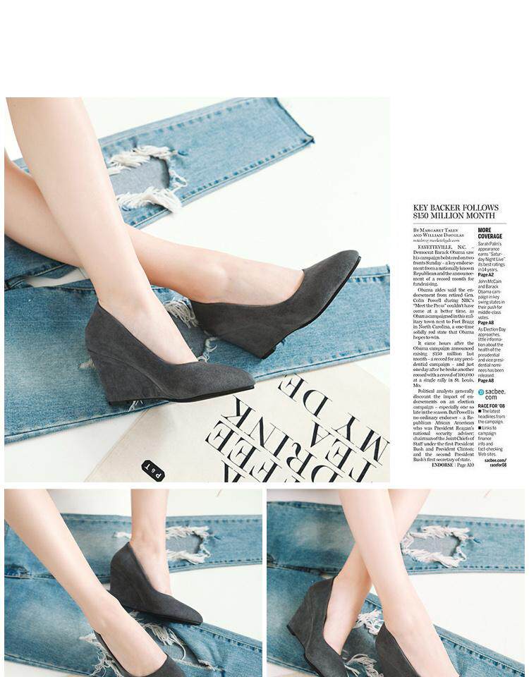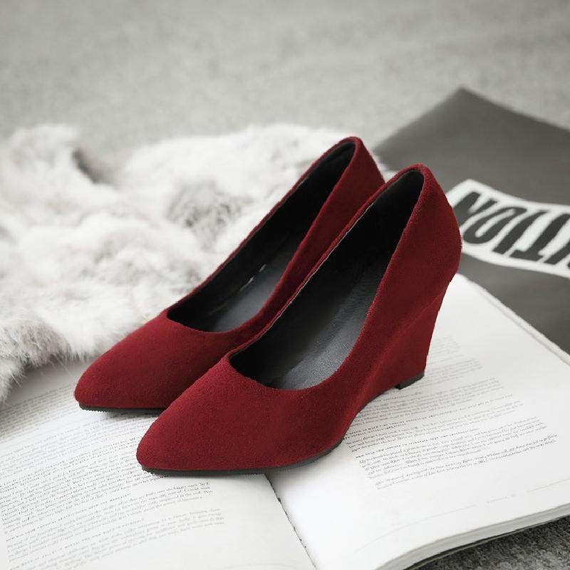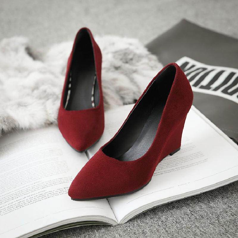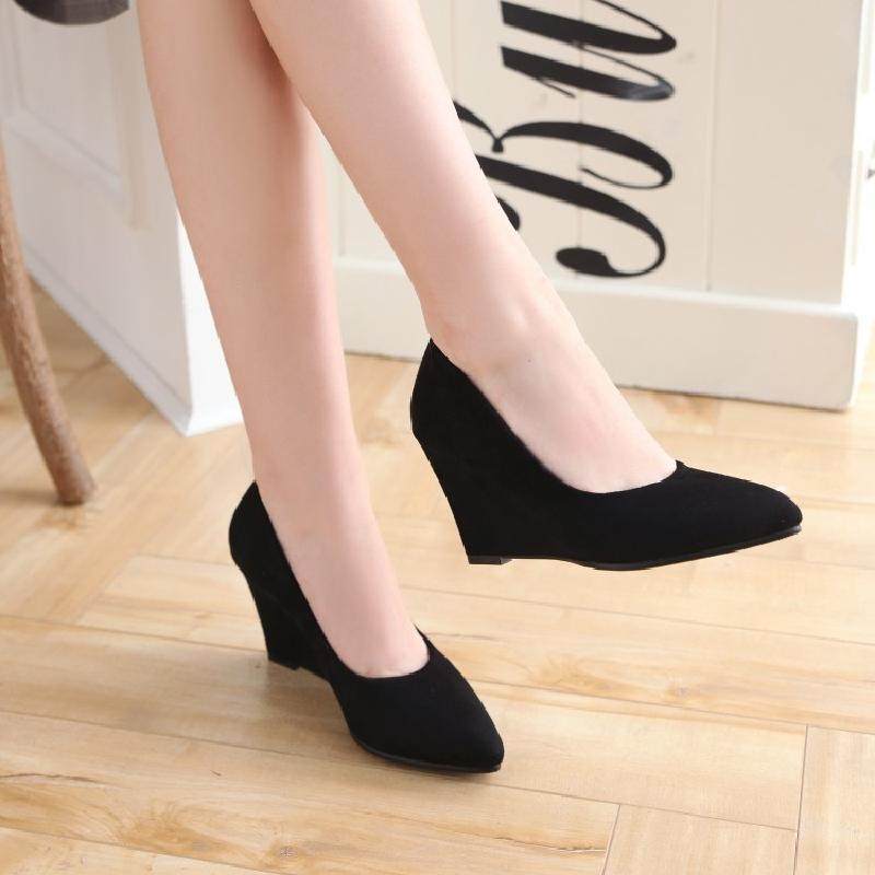 Матовые весенние женские туфли на танкетке, универсальные рабочие туфли с неглубоким носком, женские черные туфли на плоской подошве, профессиональные туфли на высоком каблуке с острым носком