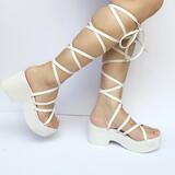Японская обувь на платформе, сандалии, лента, ремень, косплей, большой размер