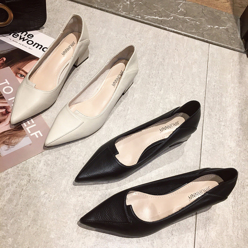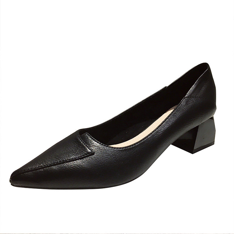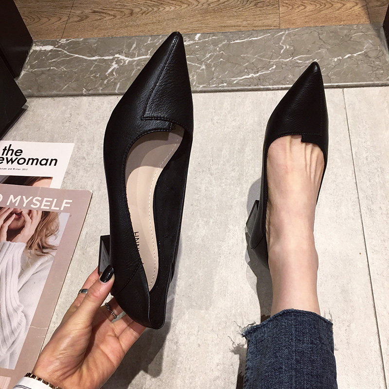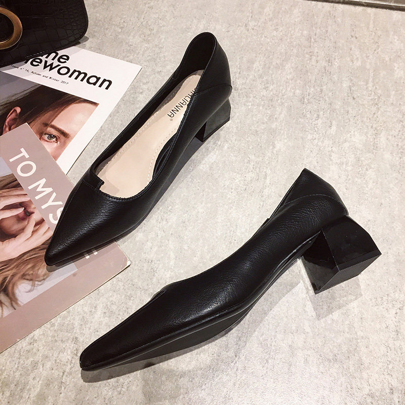 Черная универсальная весенняя рабочая обувь на высоком каблуке с заостренным носом, коллекция 2021