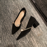 Весенняя обувь из жемчуга на высоком каблуке с заостренным носом, черная униформа медсестры, туфли, французский стиль