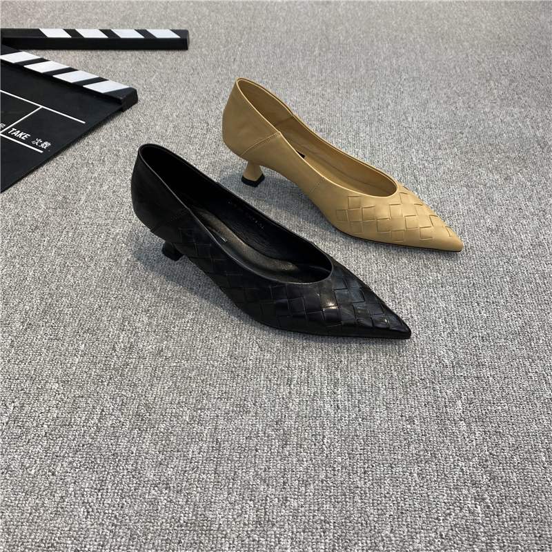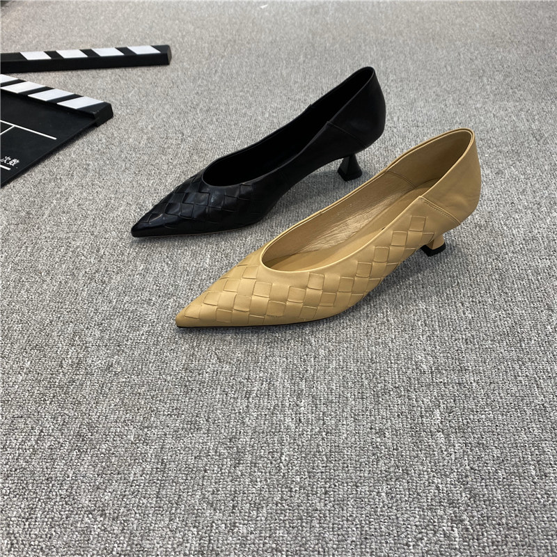 Весенняя плетеная рабочая обувь на высоком каблуке, европейский стиль, 2024 года