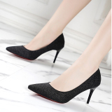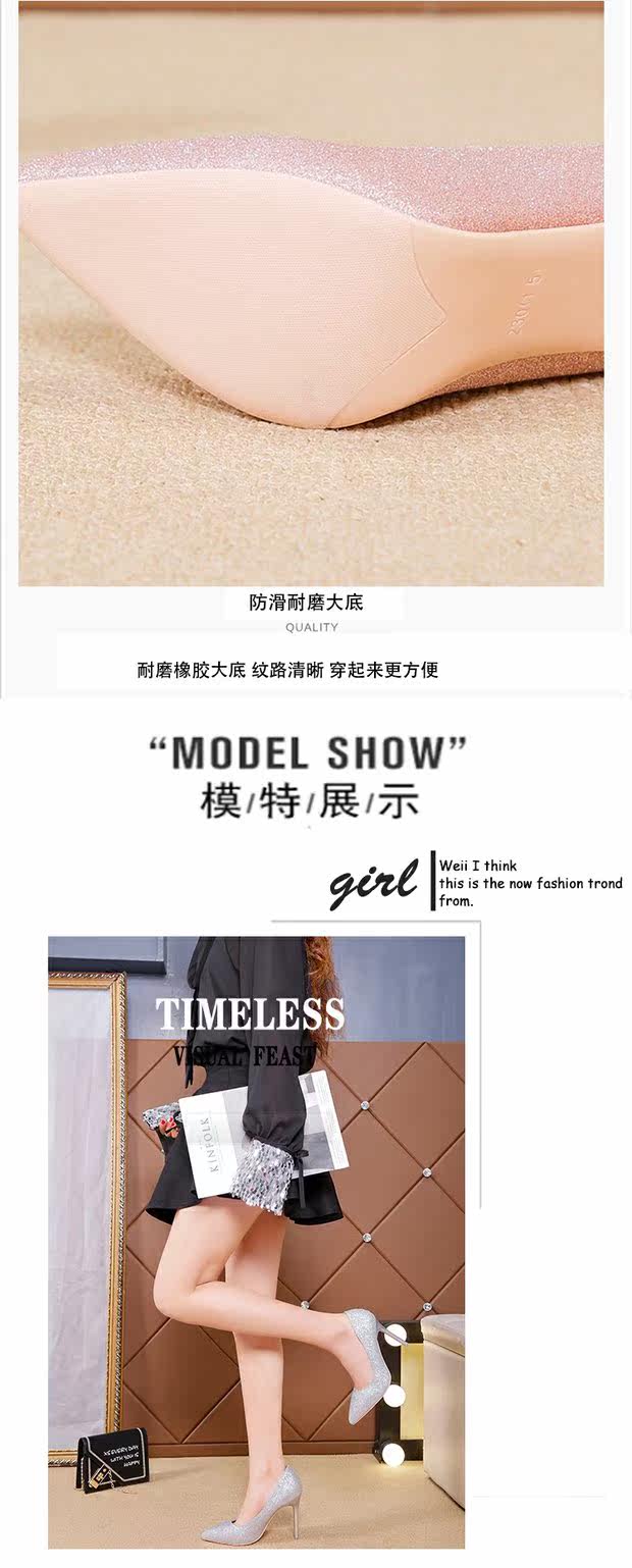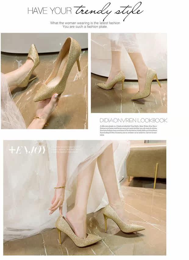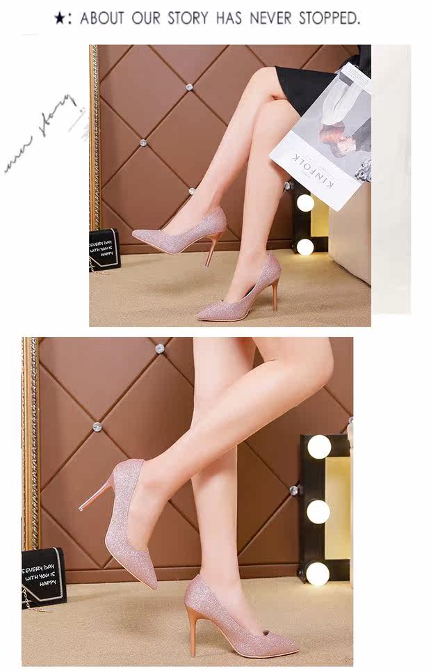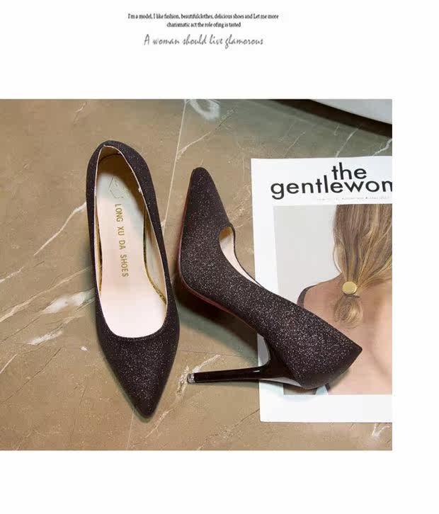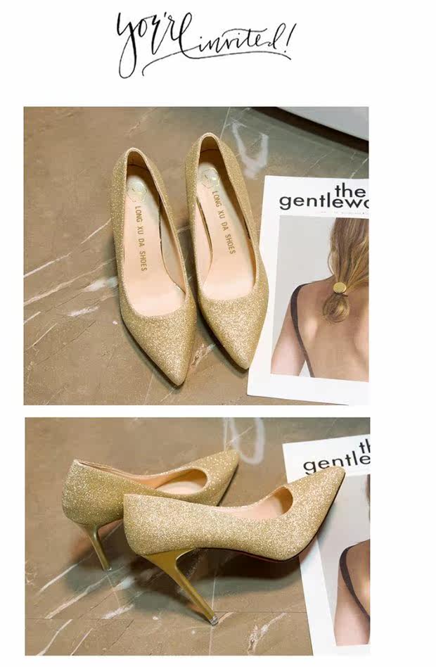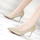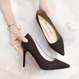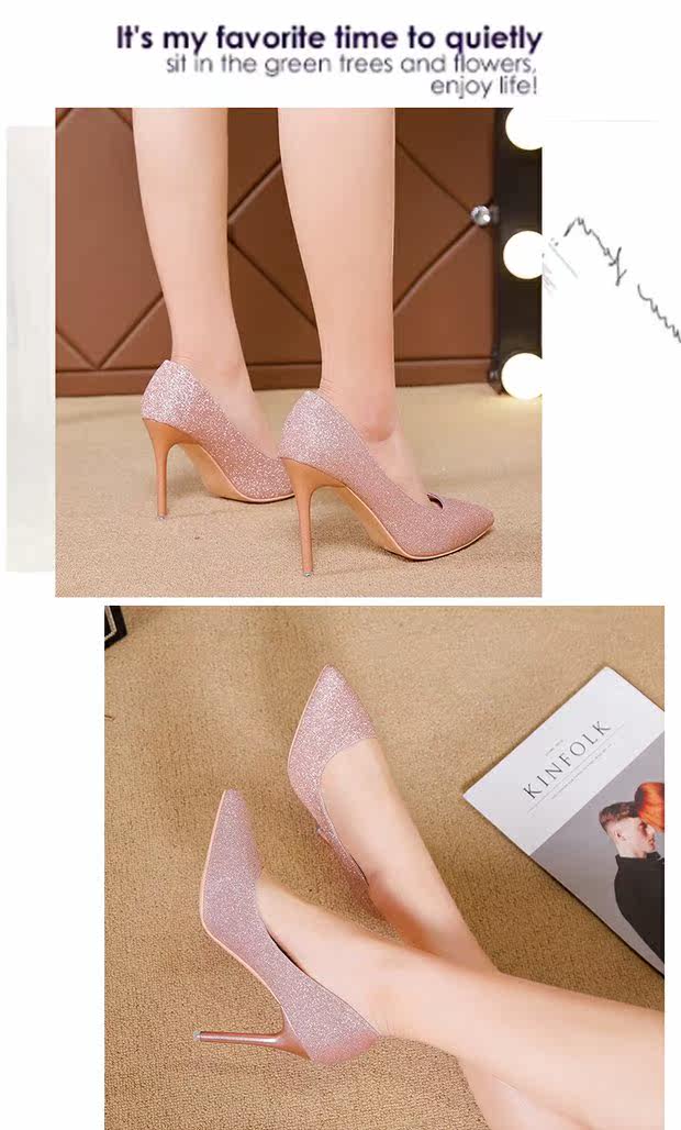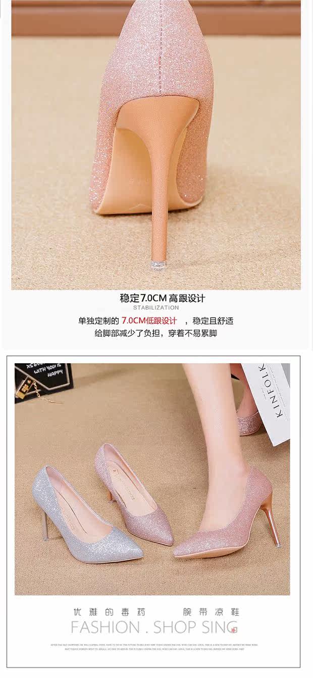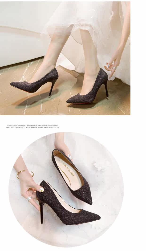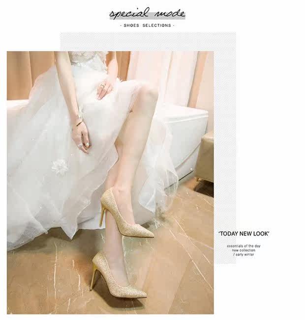 Свадебные туфли, демисезонная обувь, серебряные блестки для ногтей с заостренным носом на высоком каблуке, 2020, французский стиль