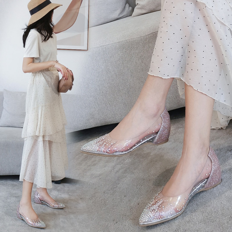 Летняя высокая обувь, свадебные туфли с заостренным носом для принцессы