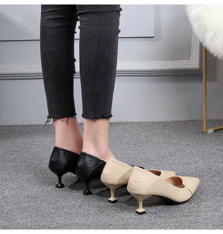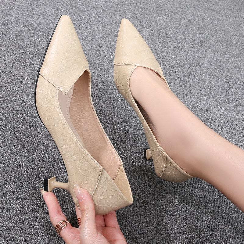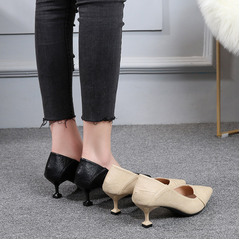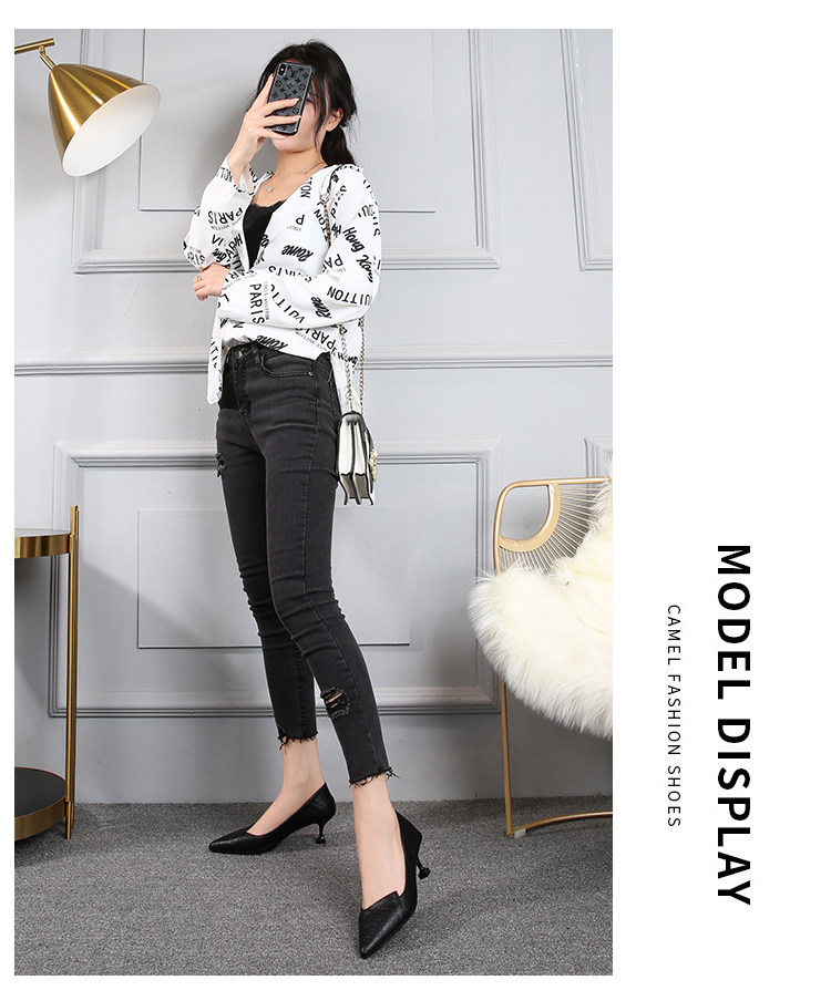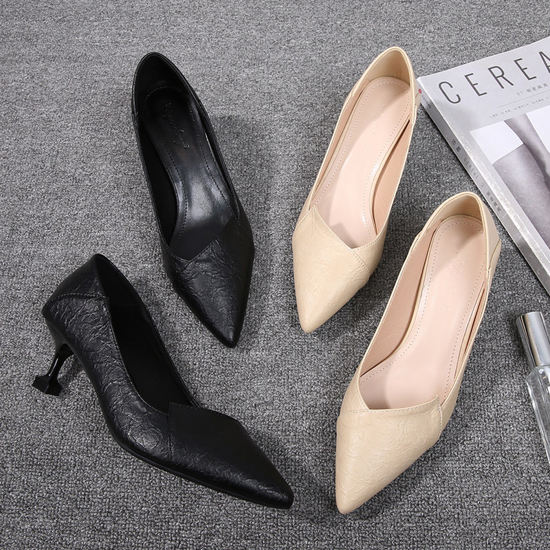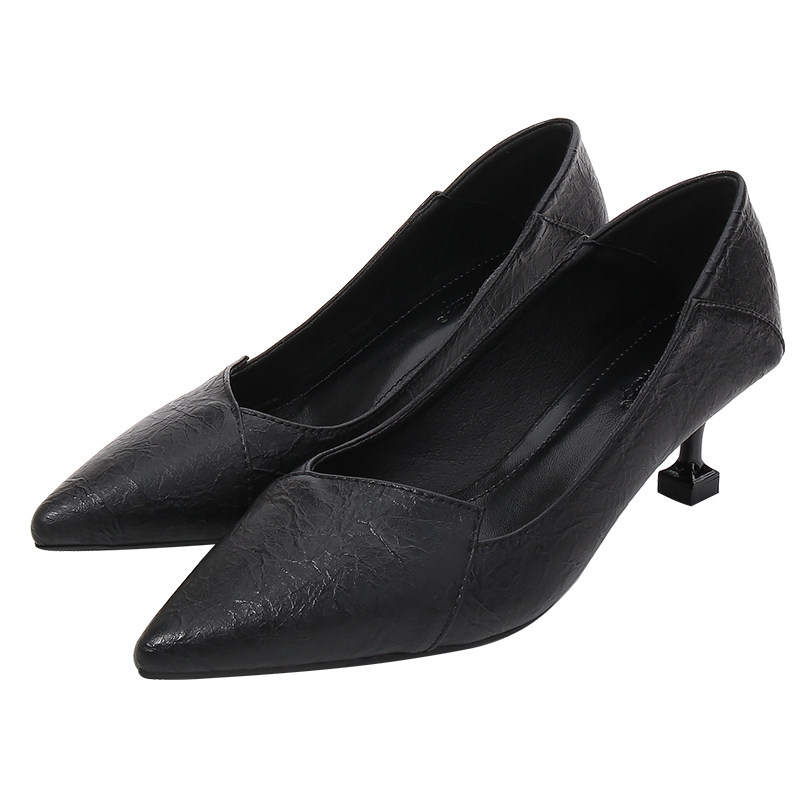 Весенняя демисезонная универсальная рабочая черная обувь на высоком каблуке