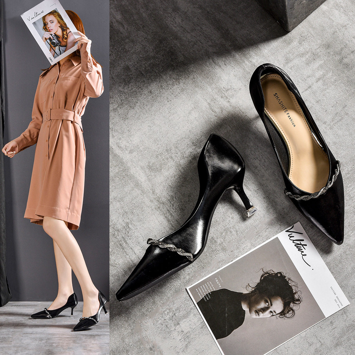 Цепь, замшевые туфли на высоком каблуке с низким вырезом, 2020, тренд сезона
