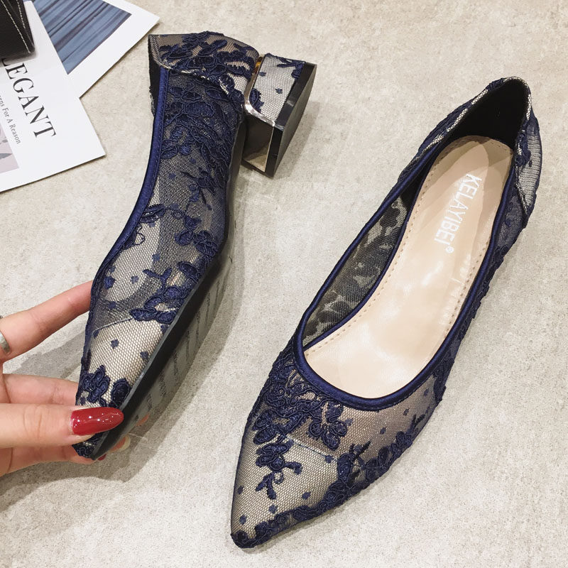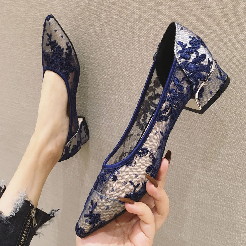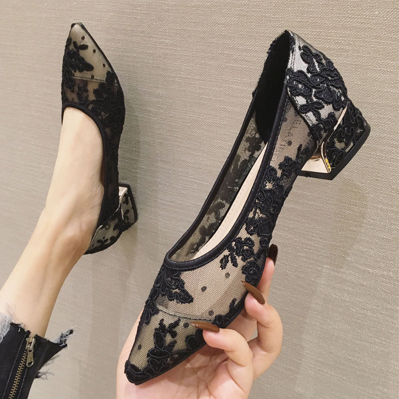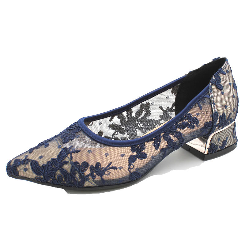 Летняя универсальная обувь с заостренным носом с низким вырезом, сетчатое кружевное ципао, с вышивкой