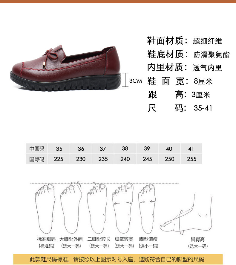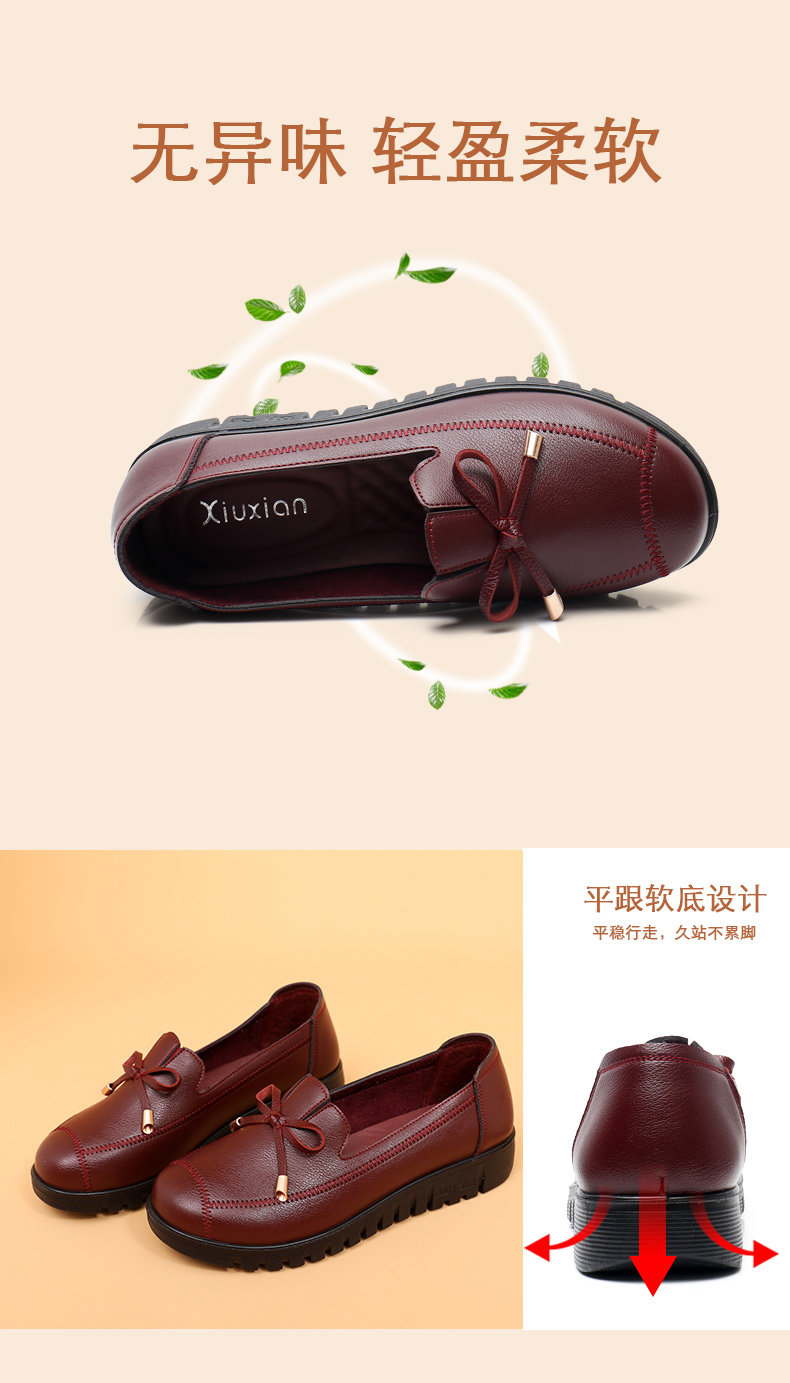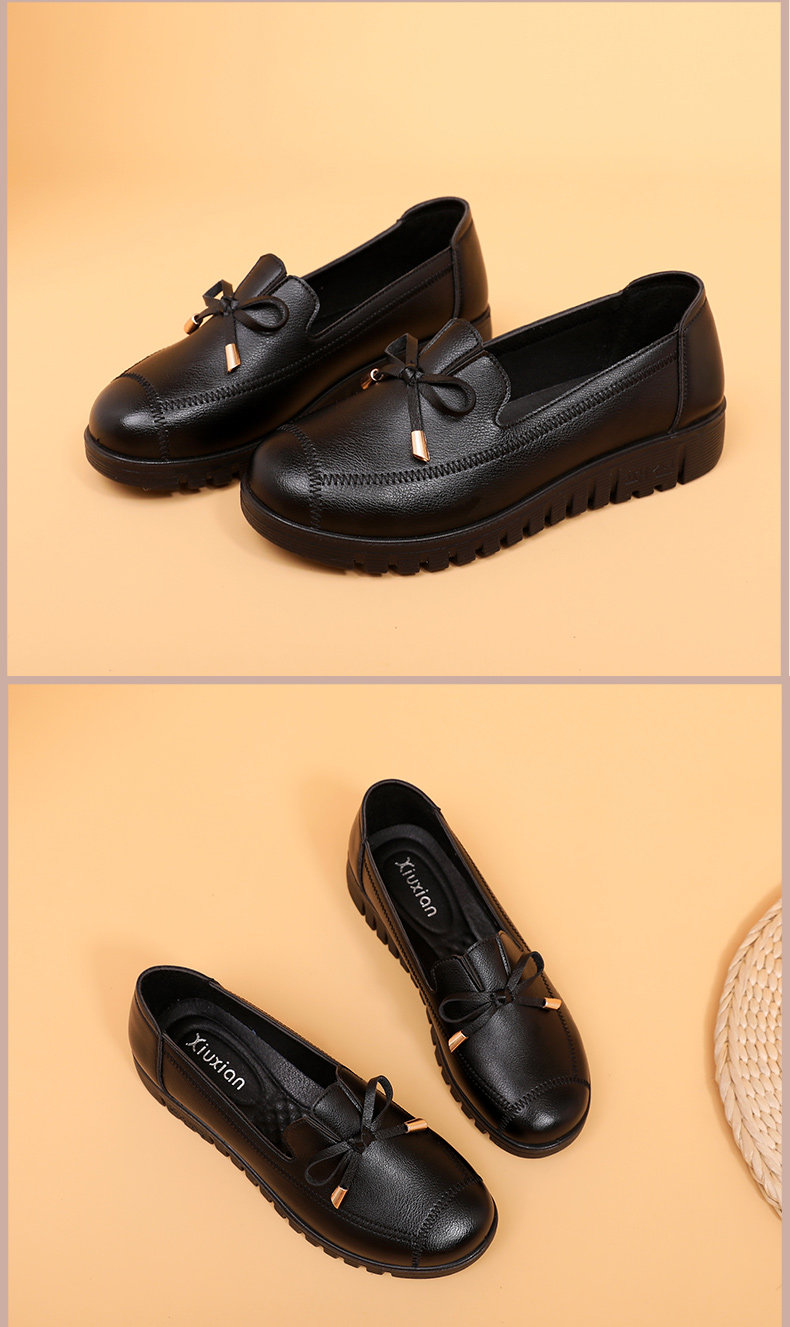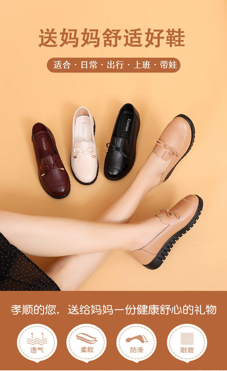 Spring Mom Shoes Soft Sole's Women's Комфортная скользящая средняя одиночная одиночная туфли старика кожа