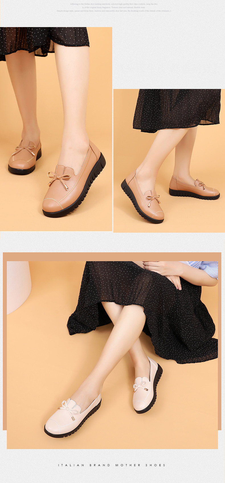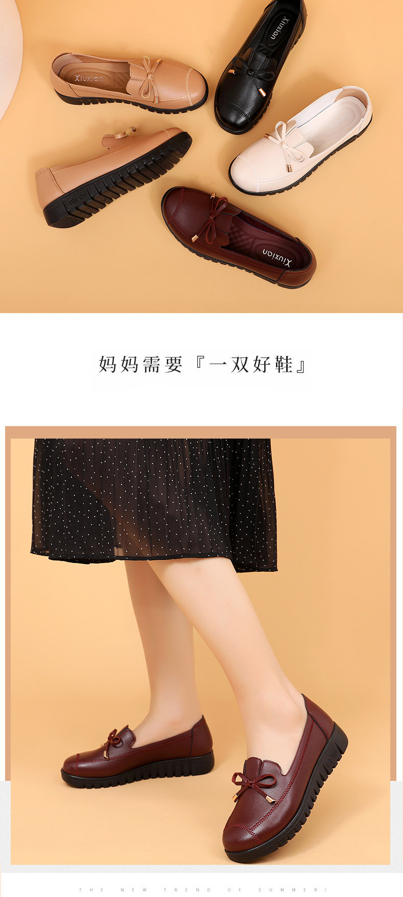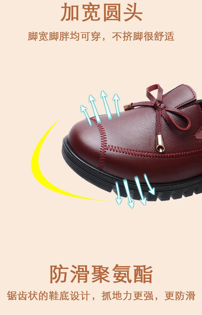 Spring Mom Shoes Soft Sole's Women's Комфортная скользящая средняя одиночная одиночная туфли старика кожа