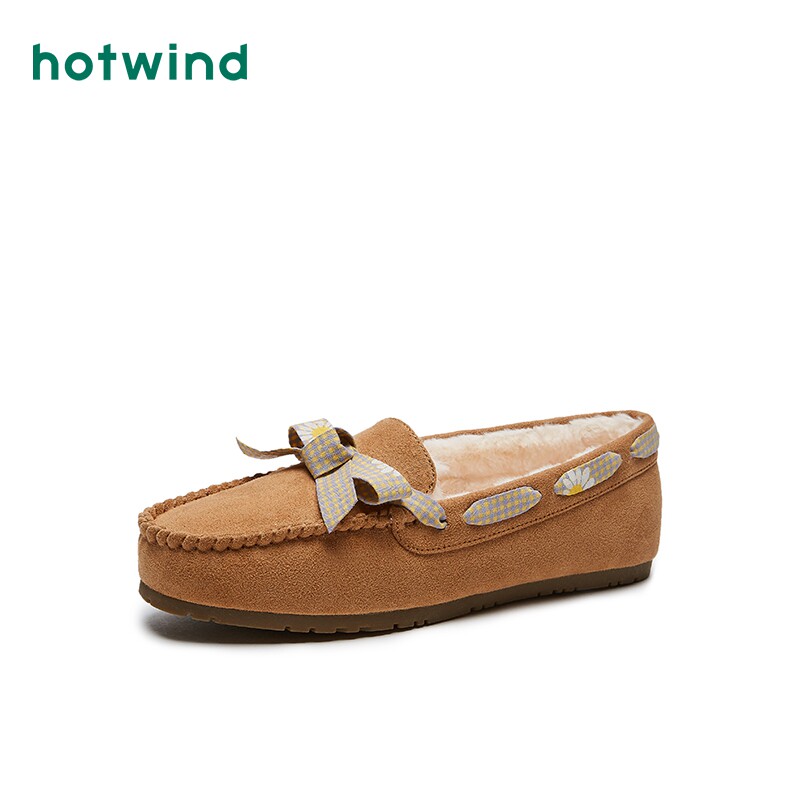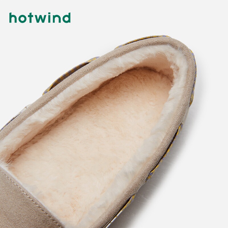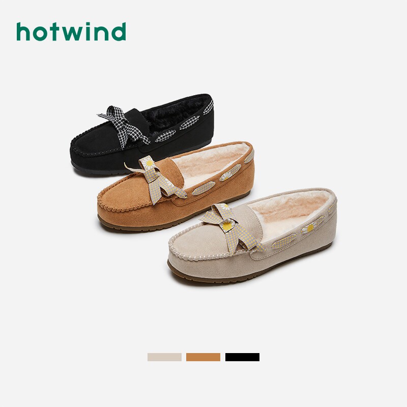 Hotwind/热风 Женские меховые туфли плюс бархат, чтобы согреться. Осень 2020, новые туфли-шапки, модная и универсальная повседневная обувь.