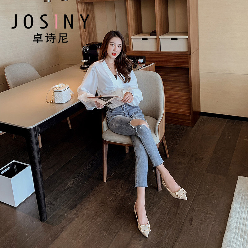 Осенняя модная универсальная черная униформа медсестры с заостренным носом, обувь, 2020