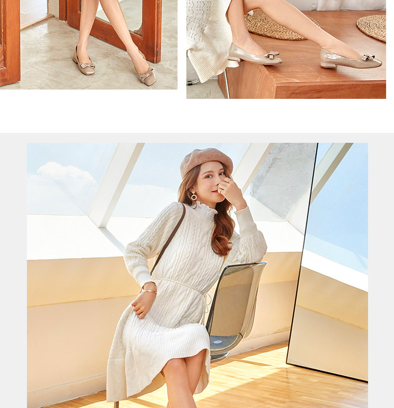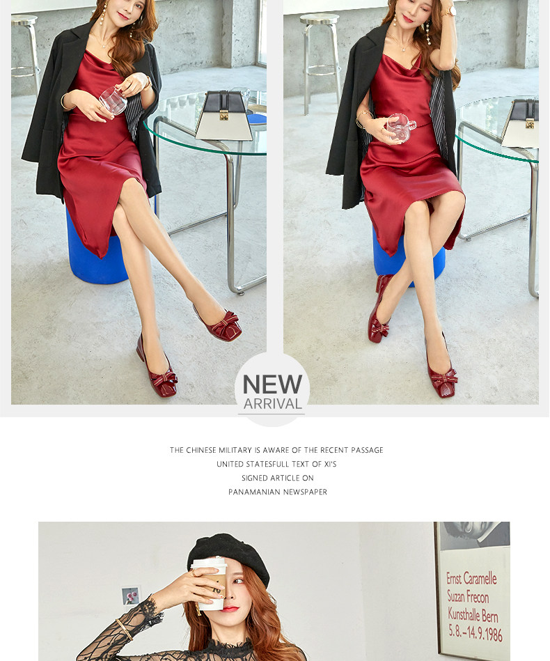 Плоская подошва обувь с бантиком, красная весенняя помада с низким вырезом, против усталых ног, мягкая подошва
