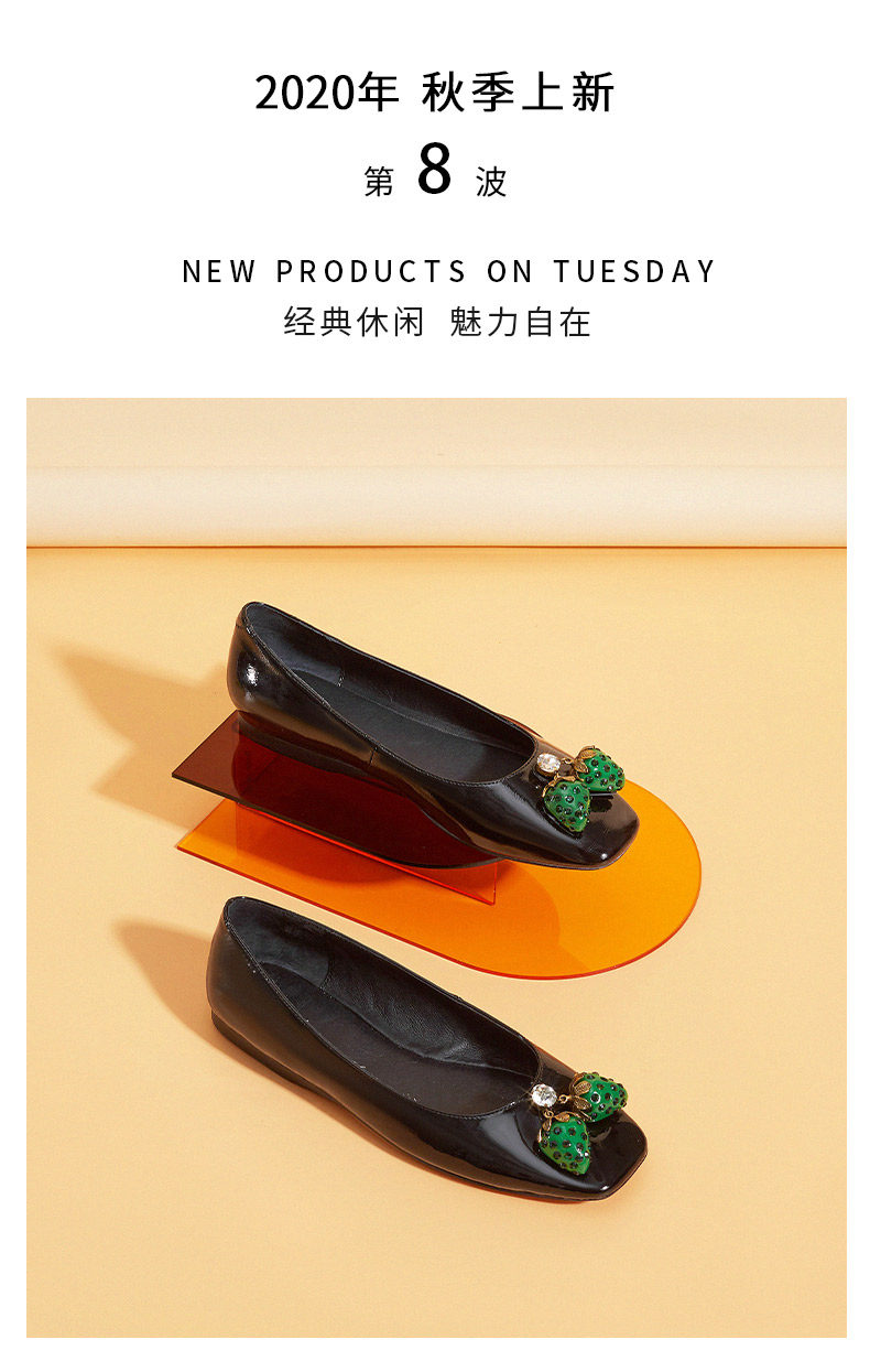 Милая обувь, плоская подошва универсальная клубника, 2020, осенняя, тренд сезона, квадратная голова, 683G