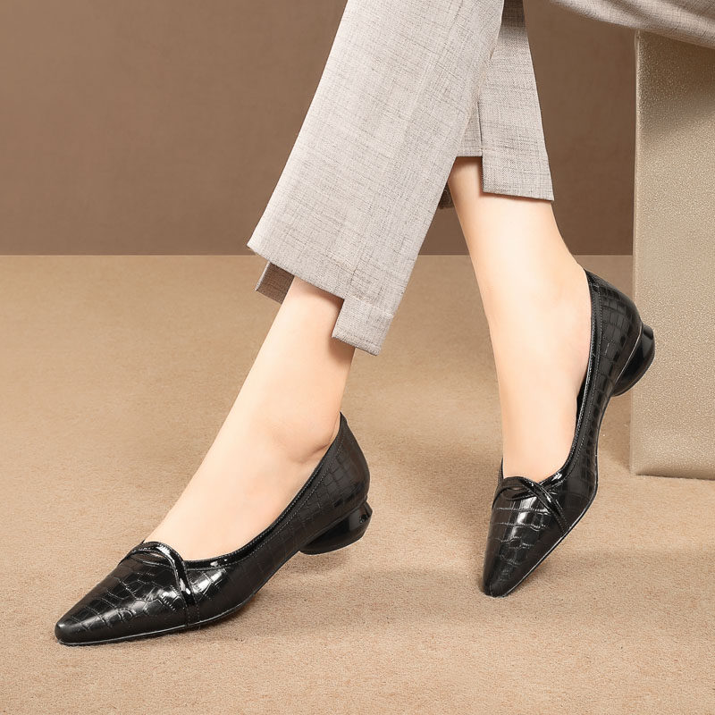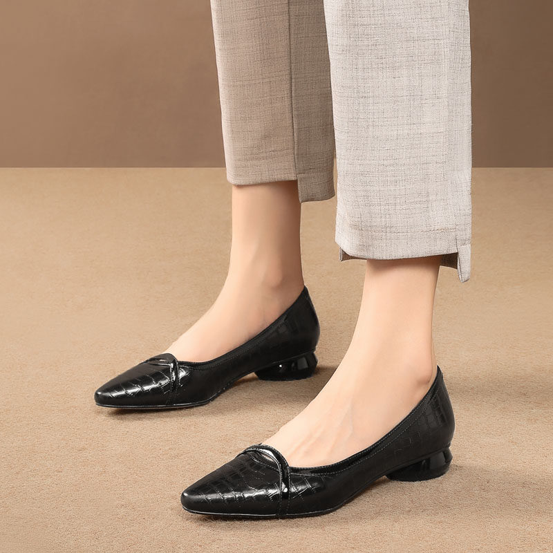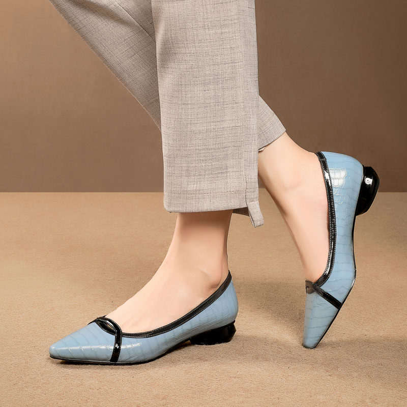 Весенняя модная обувь с заостренным носом с низким вырезом для кожаной обуви, из натуральной кожи, модель весна/осень 2023 года, большой размер