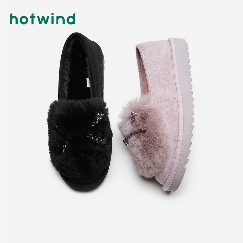 Hotwind/热风 Женские меховые туфли на нескользящей подошве и бархатные туфли на теплой подошве для верхней одежды тренд осени и зимы 2020.