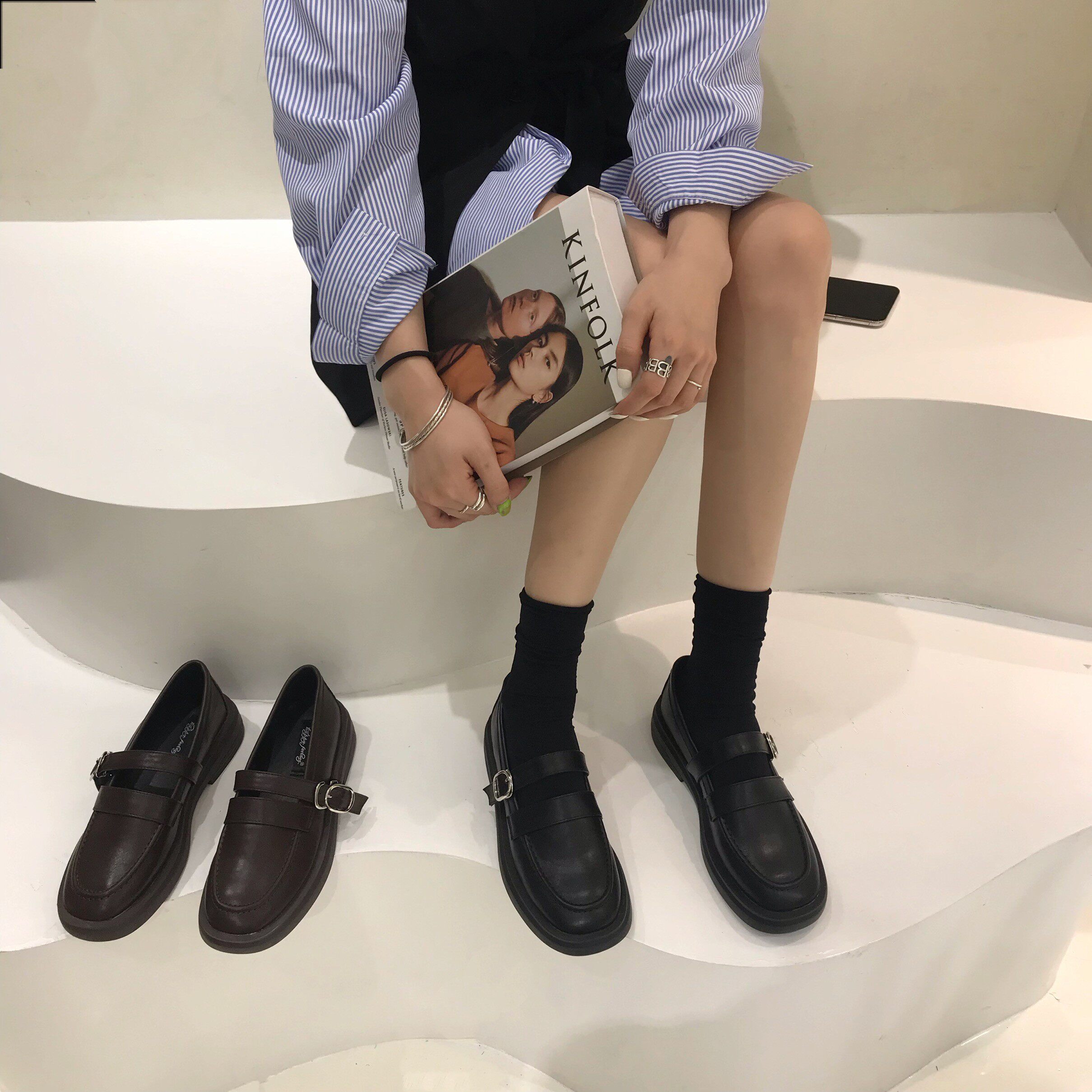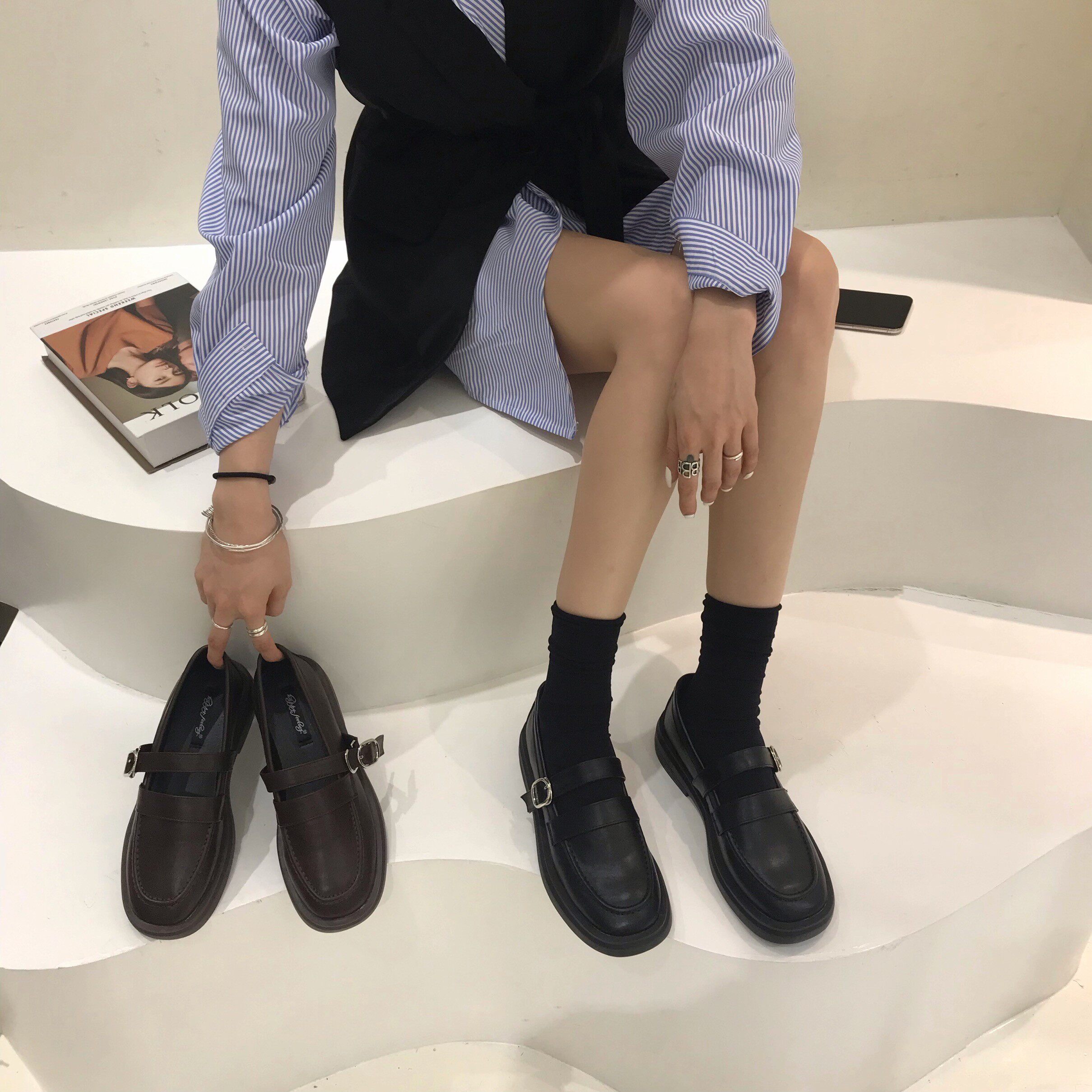 Весенняя черная обувь на платформе в английском стиле для кожаной обуви, в британском стиле, 2023