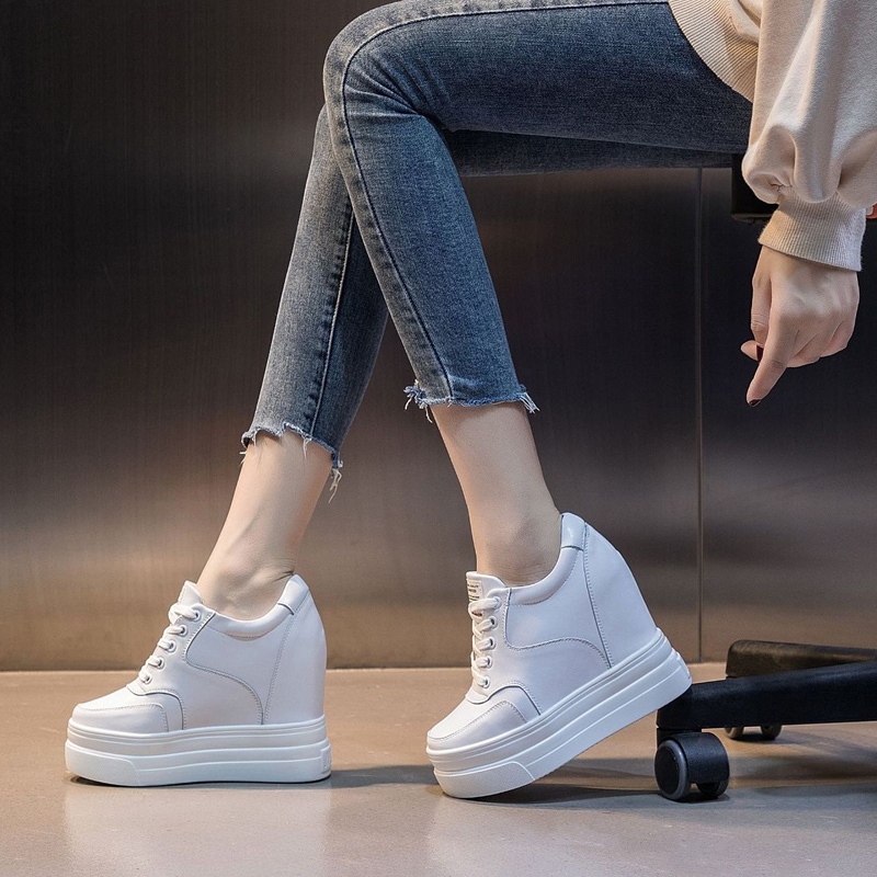 Высокая универсальная белая обувь на платформе, по фигуре, из натуральной кожи, мягкая подошва