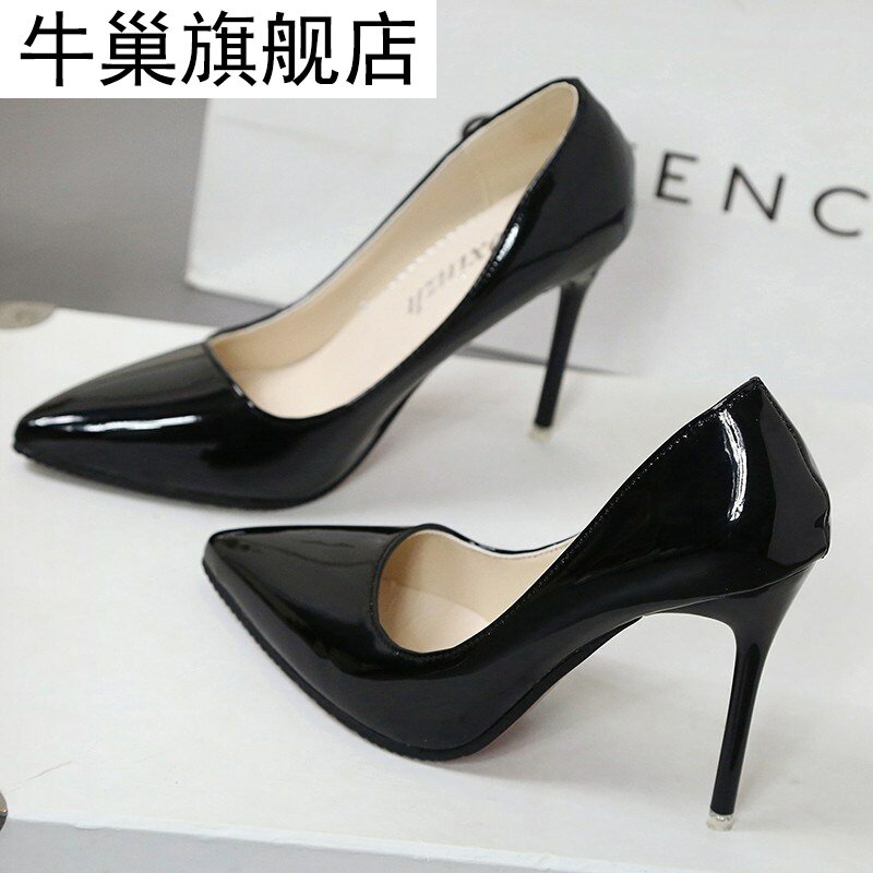 12 см. См черные ультра -высокие каблуки, японские и корейские водонепроницаемые столовые женские туфли.
