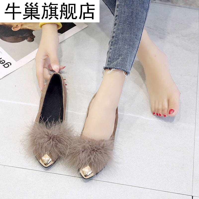 Женские туфли на плоской подошве с острым носком, новинка 2020 года, универсальные туфли на меху с неглубоким носком, модные женские туфли с круглым носком, повседневная обувь, туфли-бини