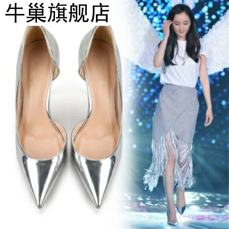 Универсальные женские туфли-лодочки на высоком каблуке с острым носком, на высоком каблуке 10 см, из лакированной кожи, серебристого и золотого цвета для знаменитостей, для ночного клуба, женские туфли-лодочки на шпильке