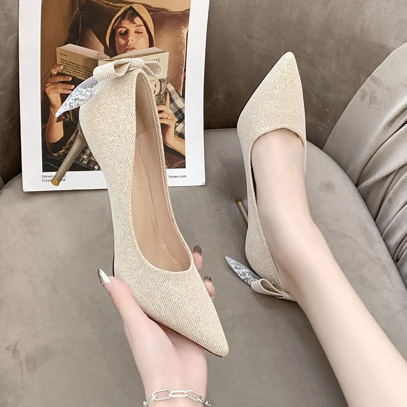 Универсальная обувь на высоком каблуке, свадебные туфли с заостренным носом, 2020 года, для подружки невесты, французский стиль, популярно в интернете