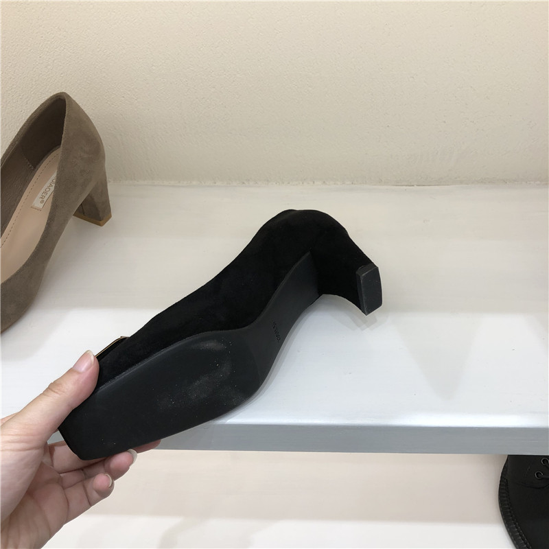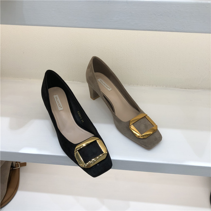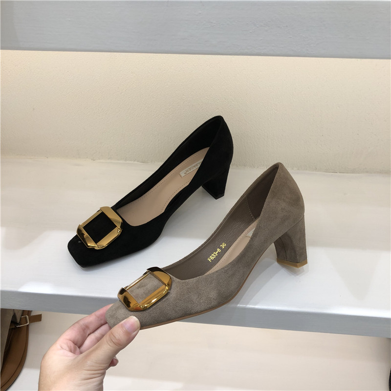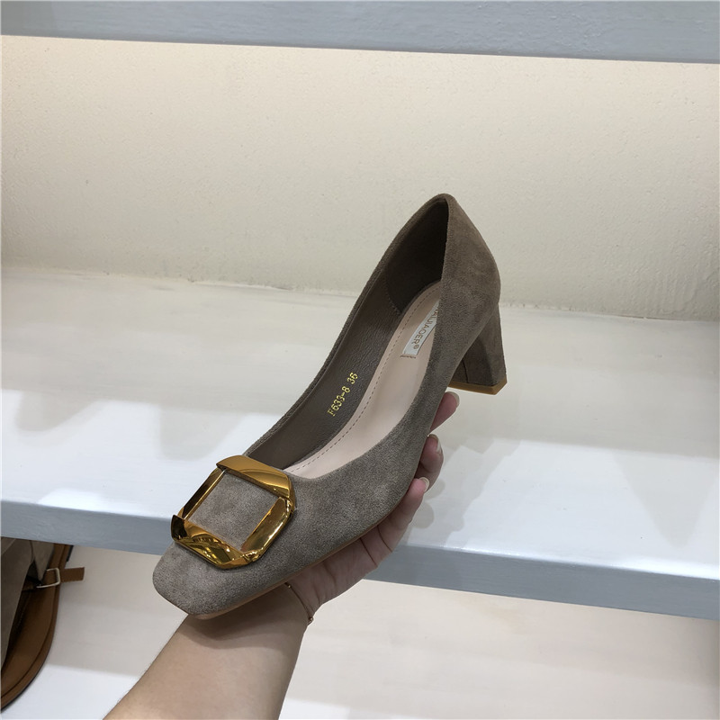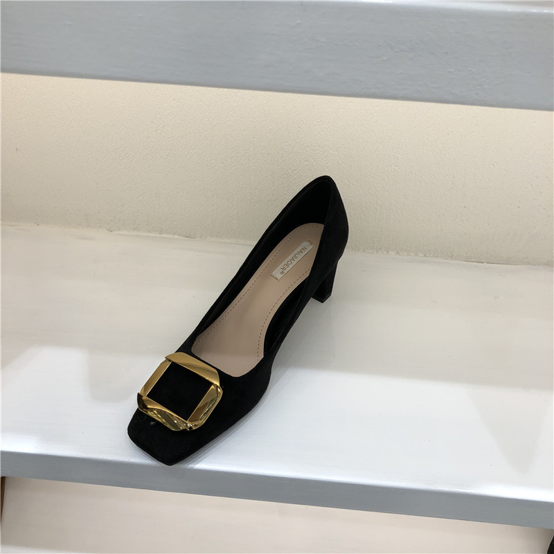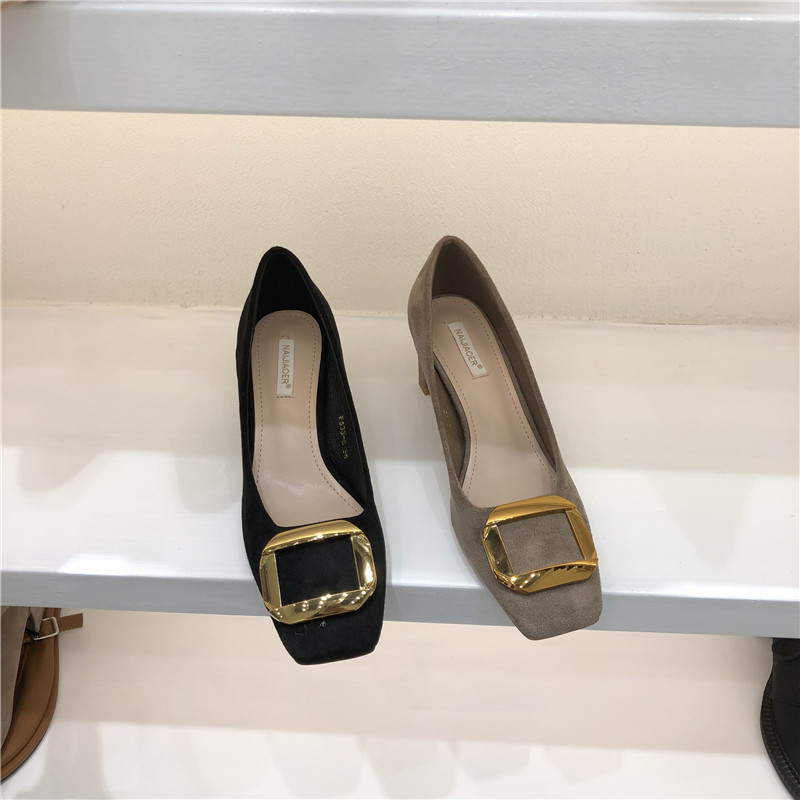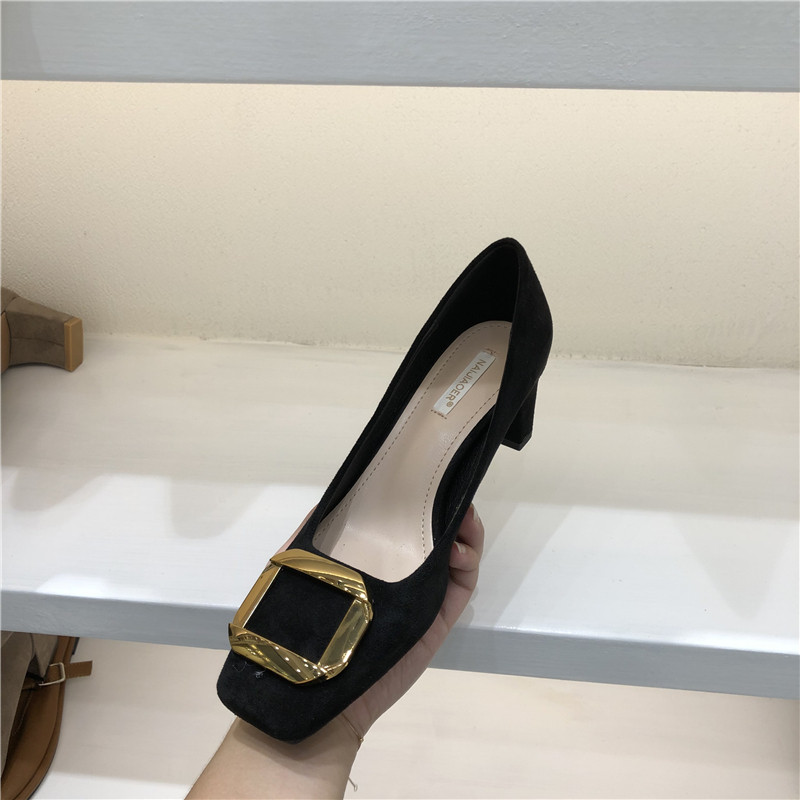 Женская обувь одиночная обувь 2020 Осень Новая корейская модель модельных работников квадратная металлическая пряжка средняя стальная работники с низким уровнем