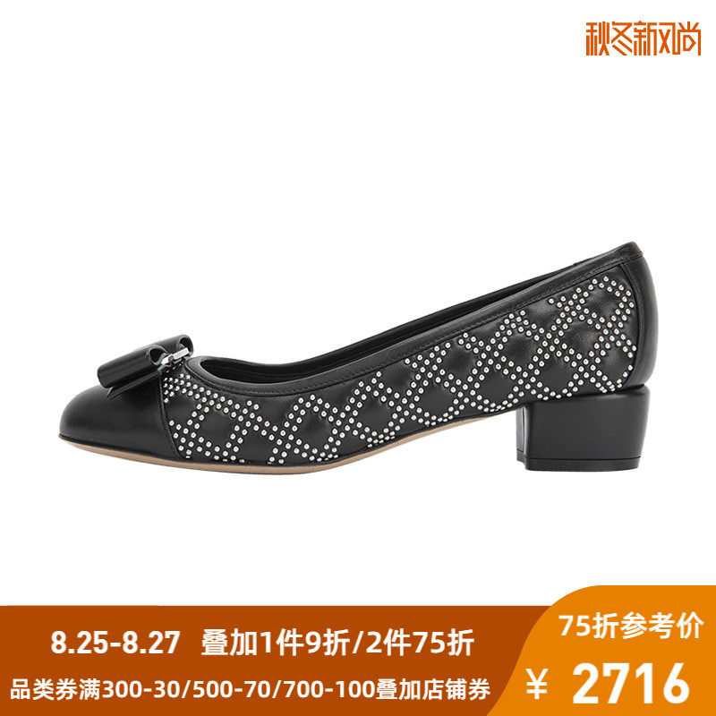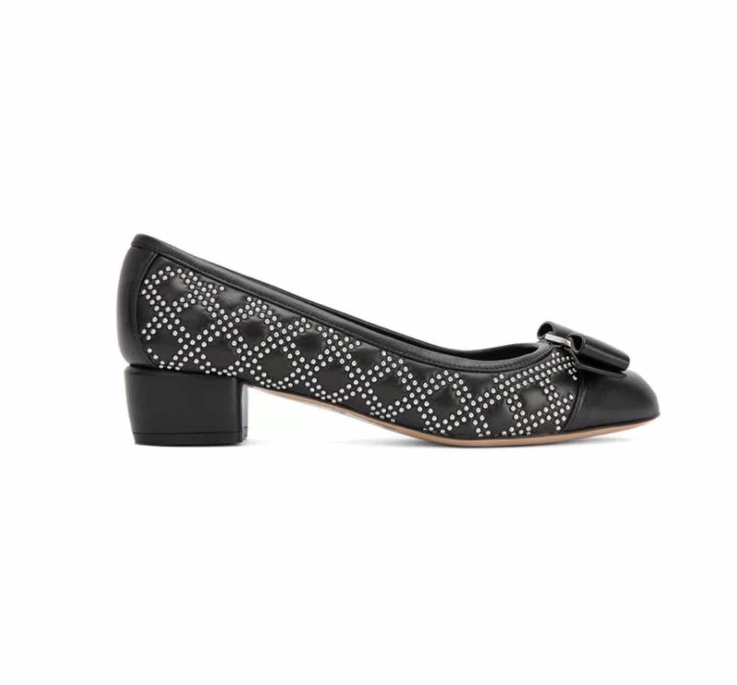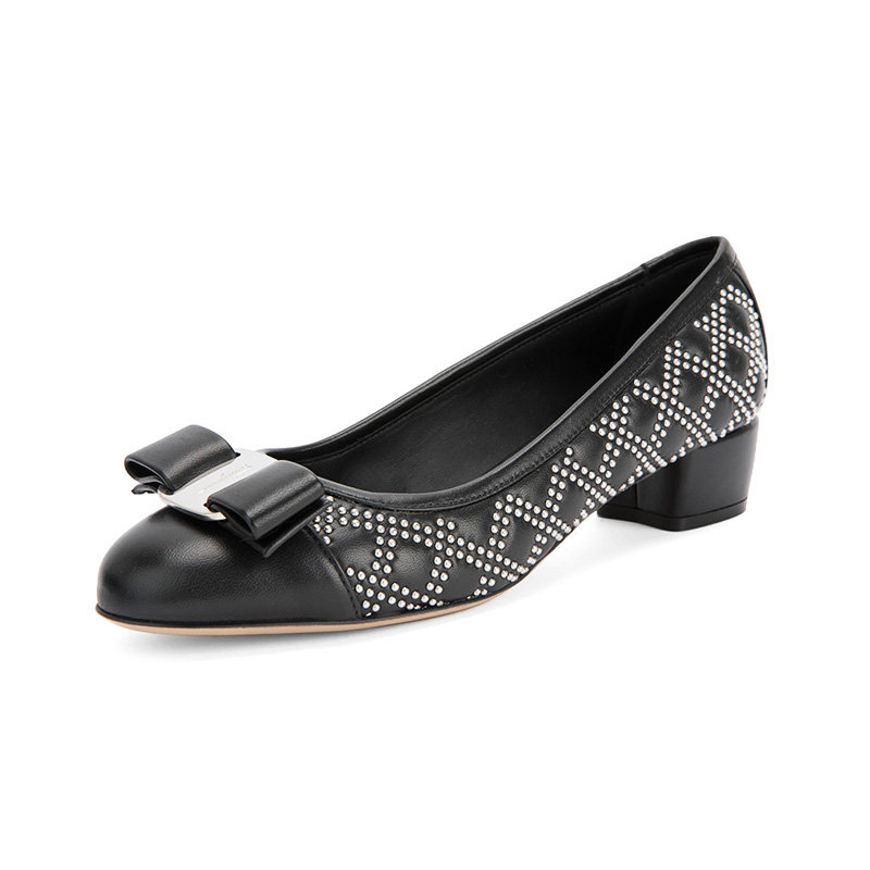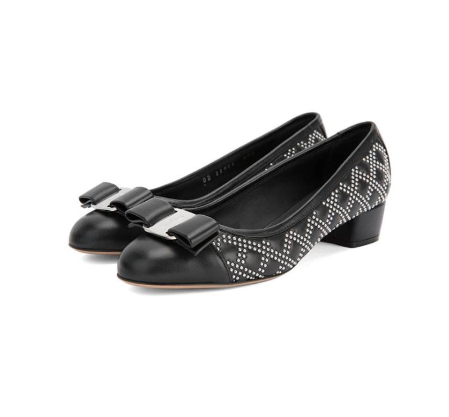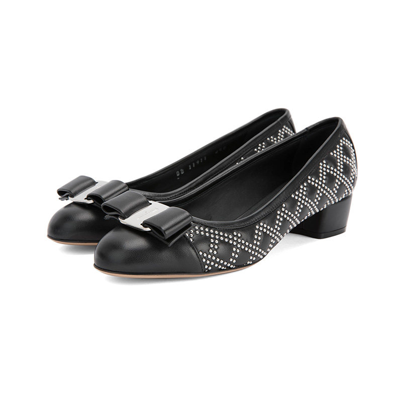 FERRAGAMO/菲拉格慕 Дизайн сплайсинга черного алмаза простые и классические одиночные туфли с низким уровнем.
