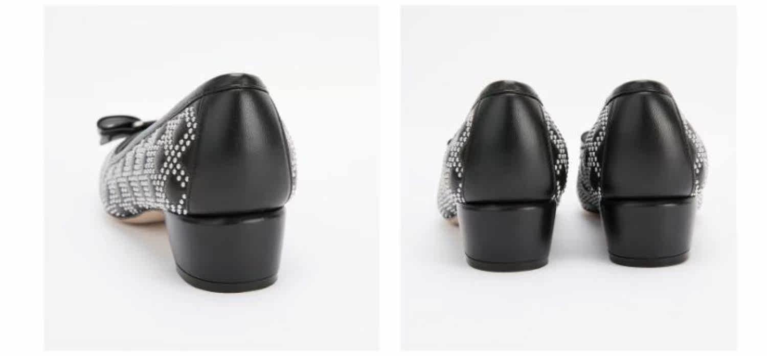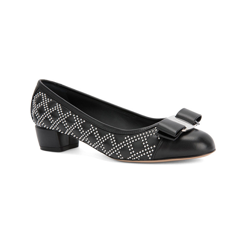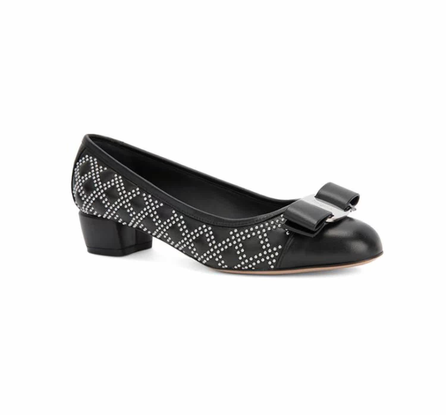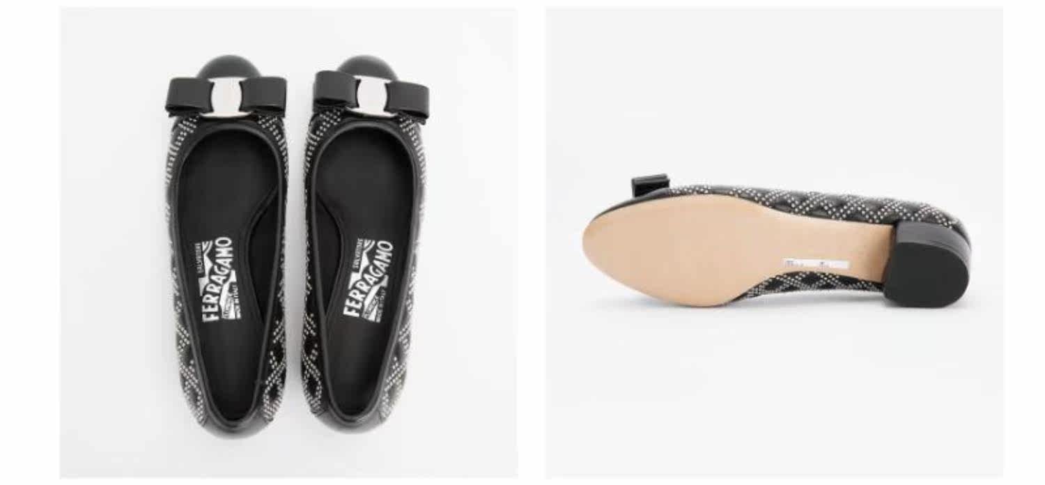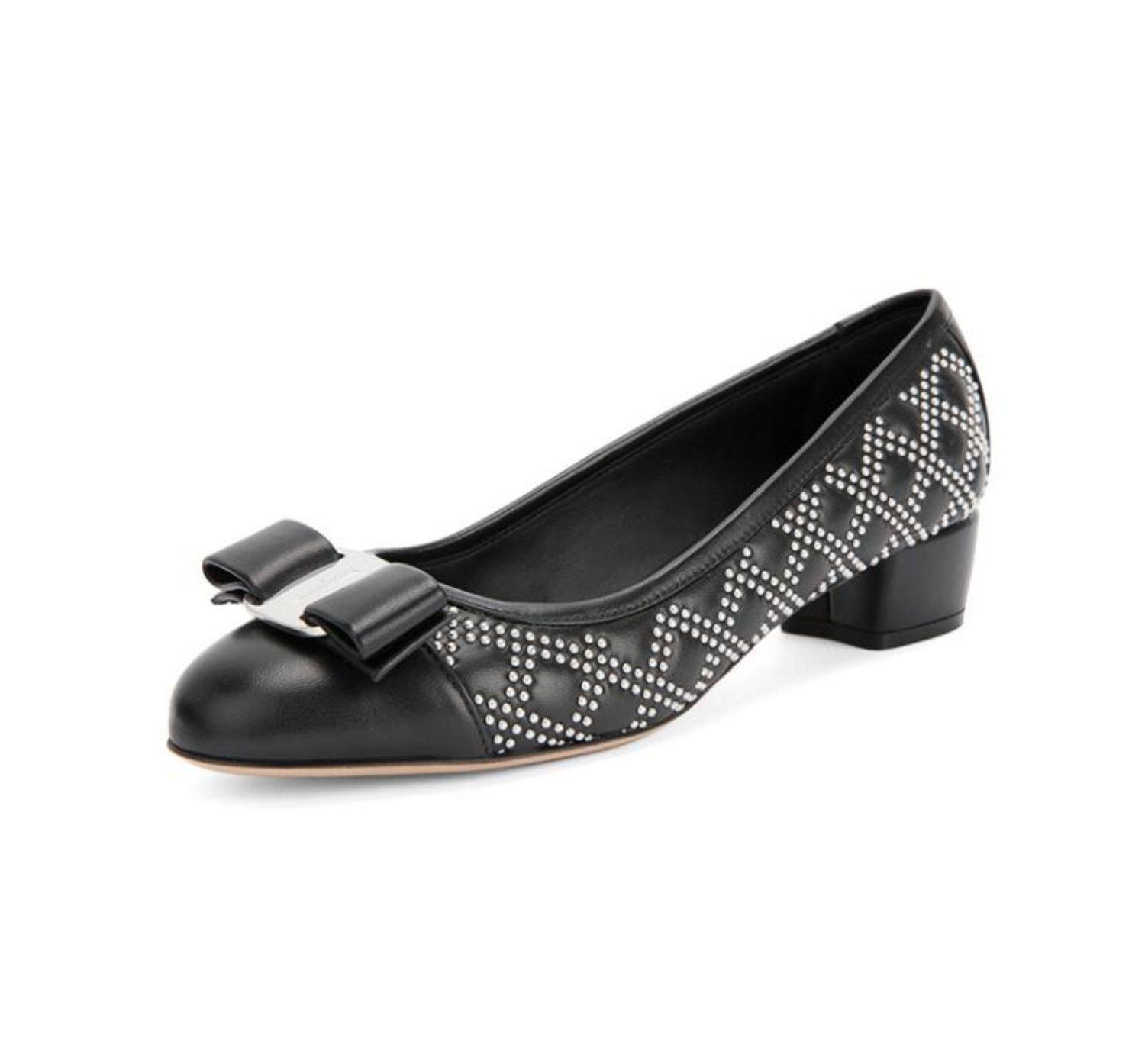 FERRAGAMO/菲拉格慕 Дизайн сплайсинга черного алмаза простые и классические одиночные туфли с низким уровнем.