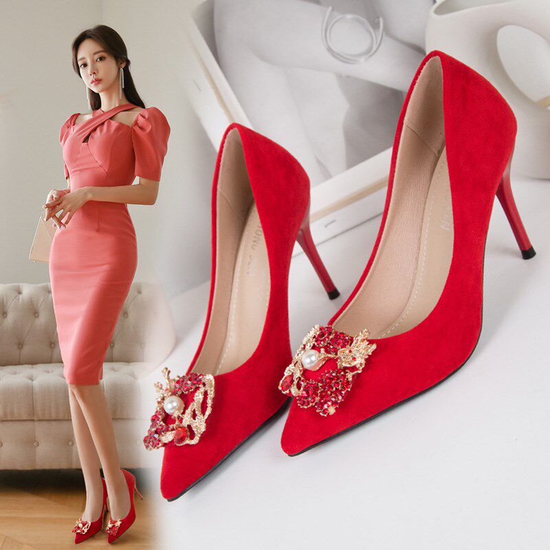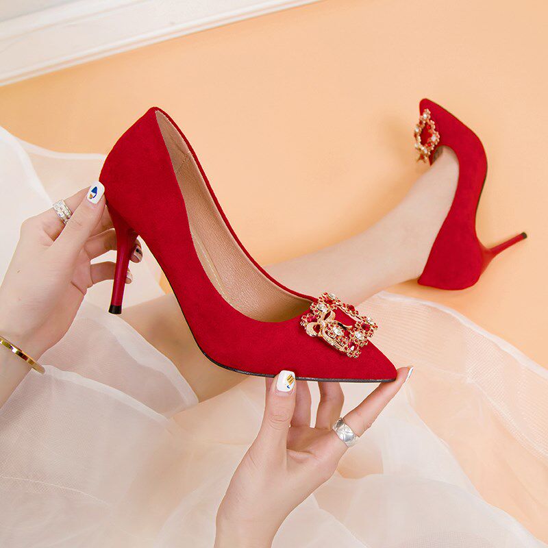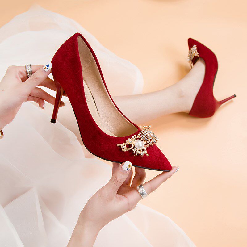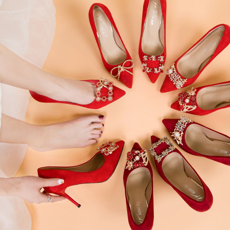 Туфли на высоком каблуке, весенние красные универсальные свадебные туфли для невесты с низким вырезом, 2020 года