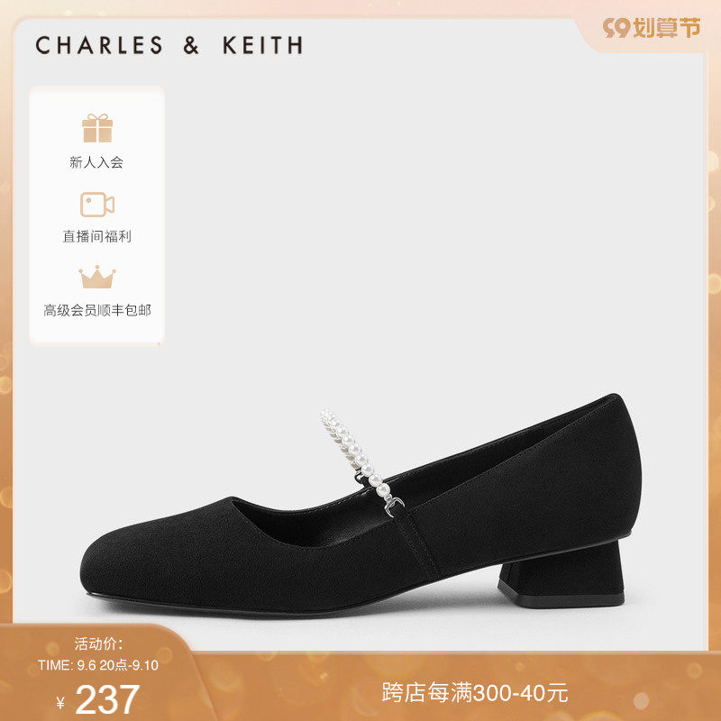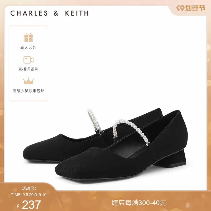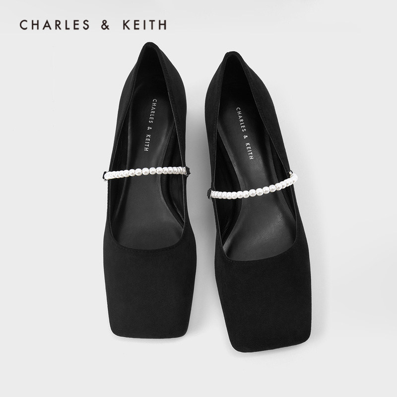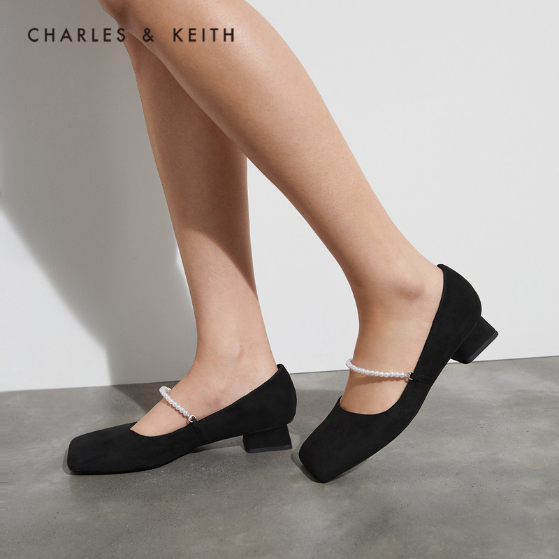 Женская обувь Charles & Keith Женская обувь CK1-61720062 Женские жемчужные группы с низкой каблукой одиночные туфли