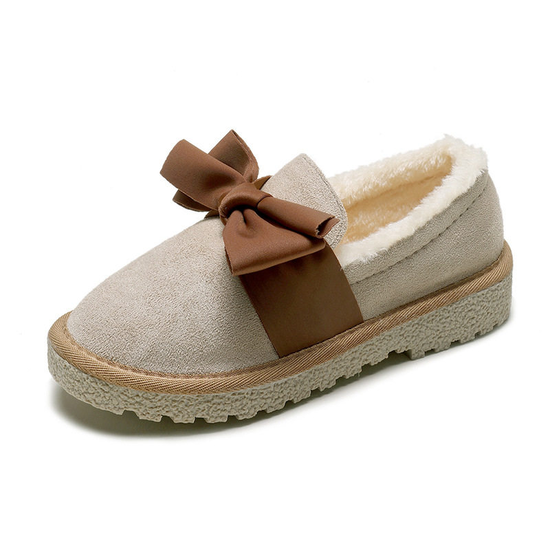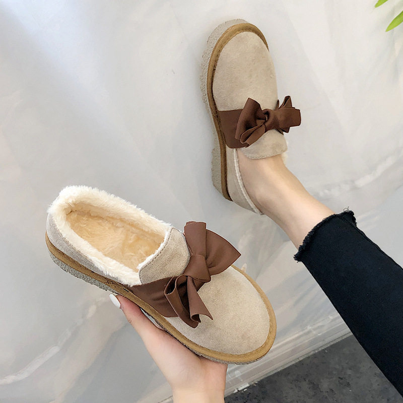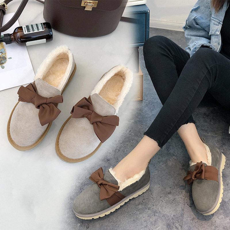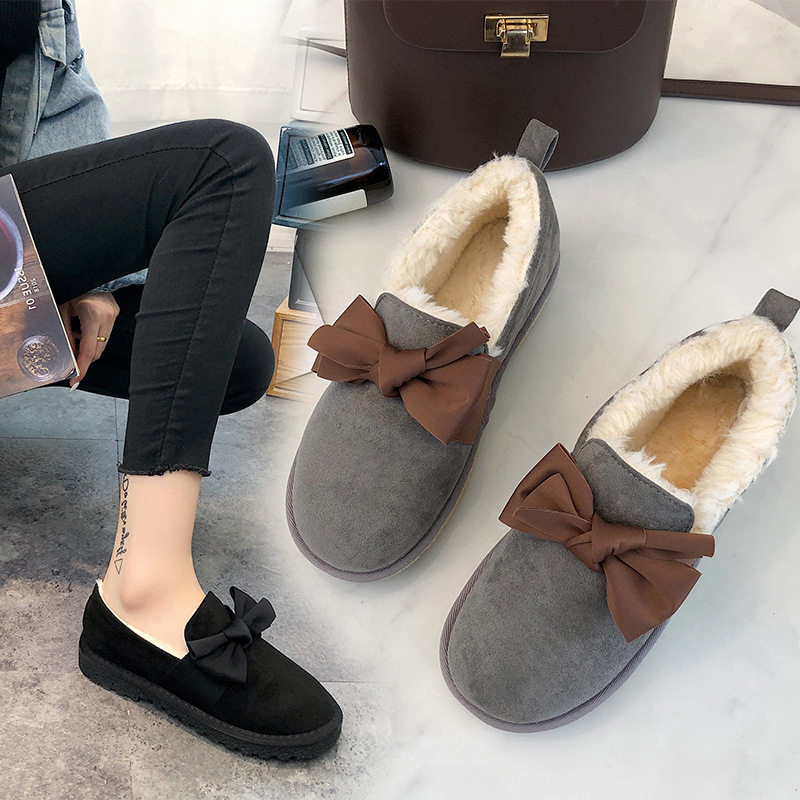 Хлопковая обувь для студенток, корейская версия, универсальная зимняя обувь с бархатными шапками и бантом, обувь на утолщенном меху, новая теплая обувь