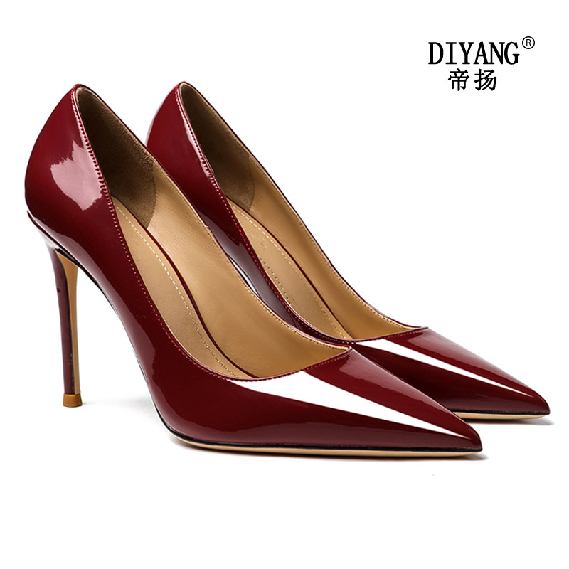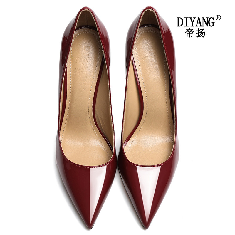 帝扬 Бордовые универсальные сексуальные туфли на высоком каблуке с низким вырезом, из натуральной кожи