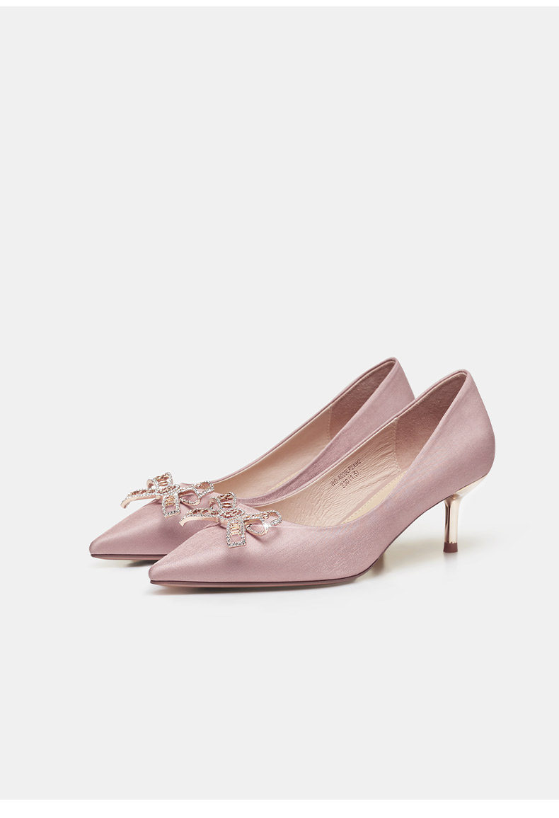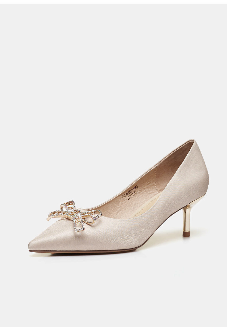 Нюдовые весенние туфли на высоком каблуке на высоком каблуке, свадебные туфли с бантиком с заостренным носом, для подружки невесты, популярно в интернете