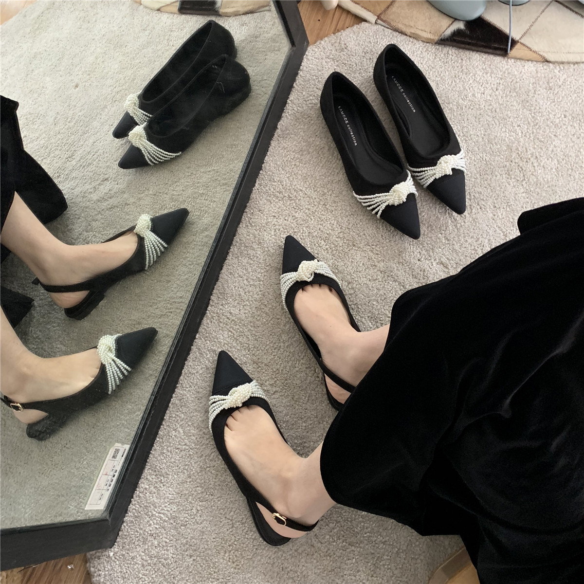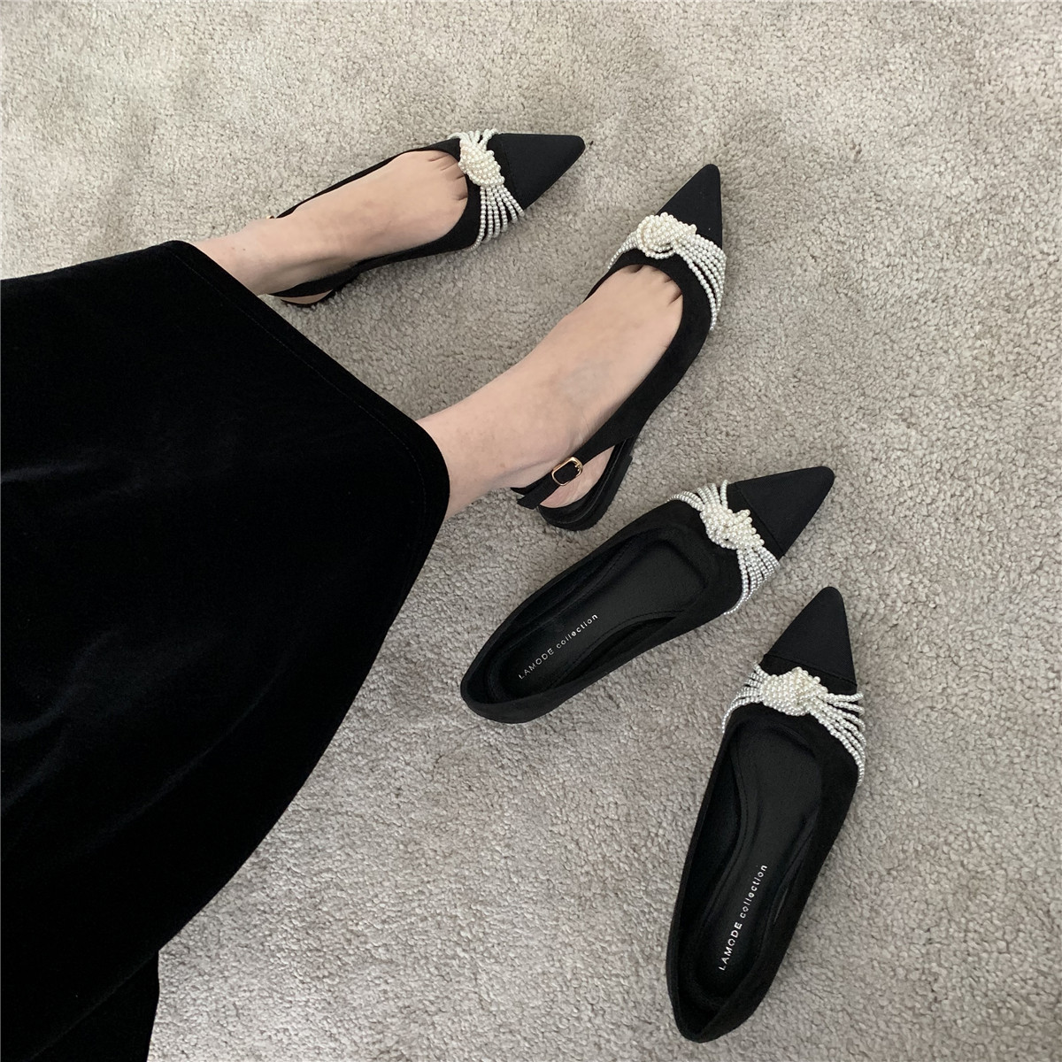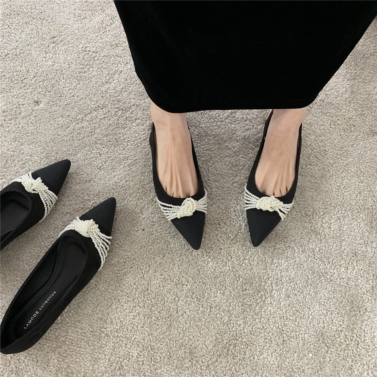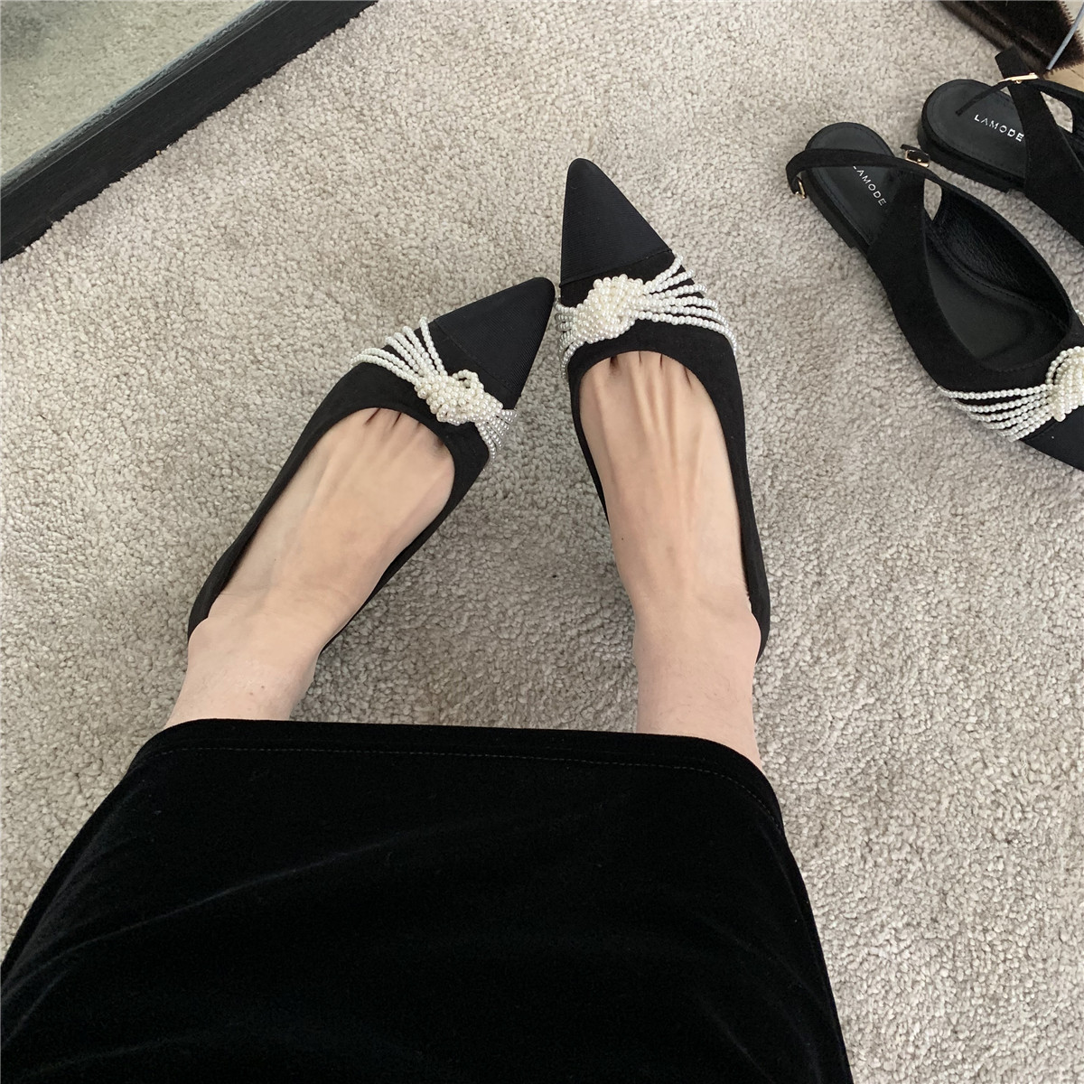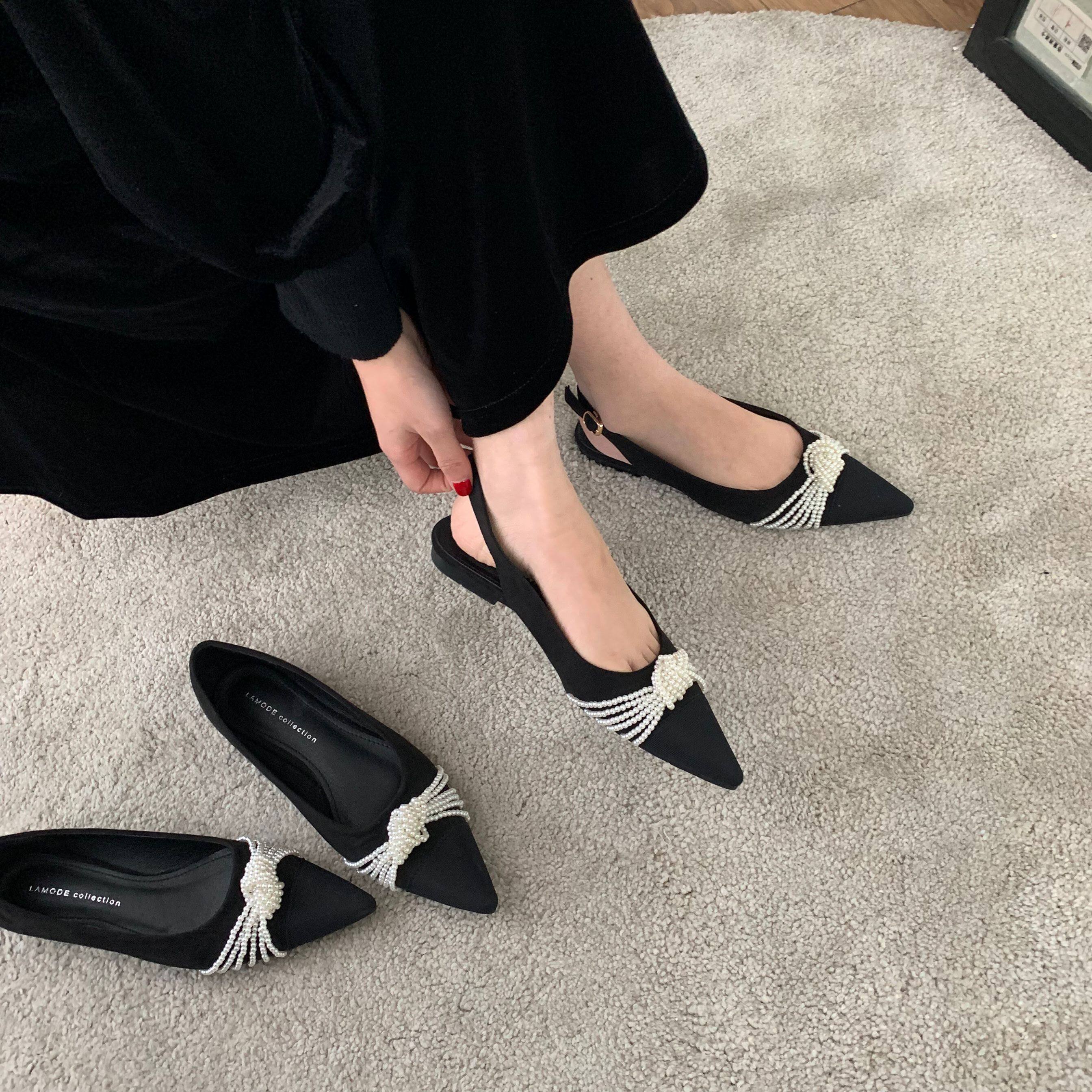 Браслет из бисера с бантиком с заостренным носом с низким вырезом, весенняя универсальная плоская подошва обувь, в корейском стиле, по фигуре, коллекция 2021, тренд сезона