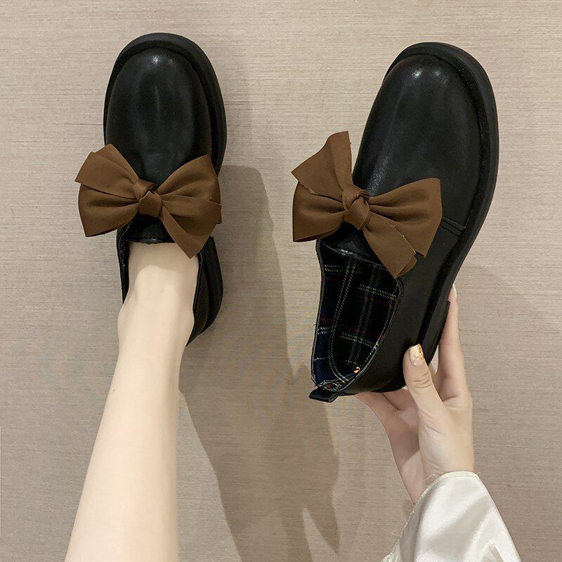 Милая весенняя универсальная обувь для кожаной обуви для отдыха с бантиком, коллекция 2021, в корейском стиле