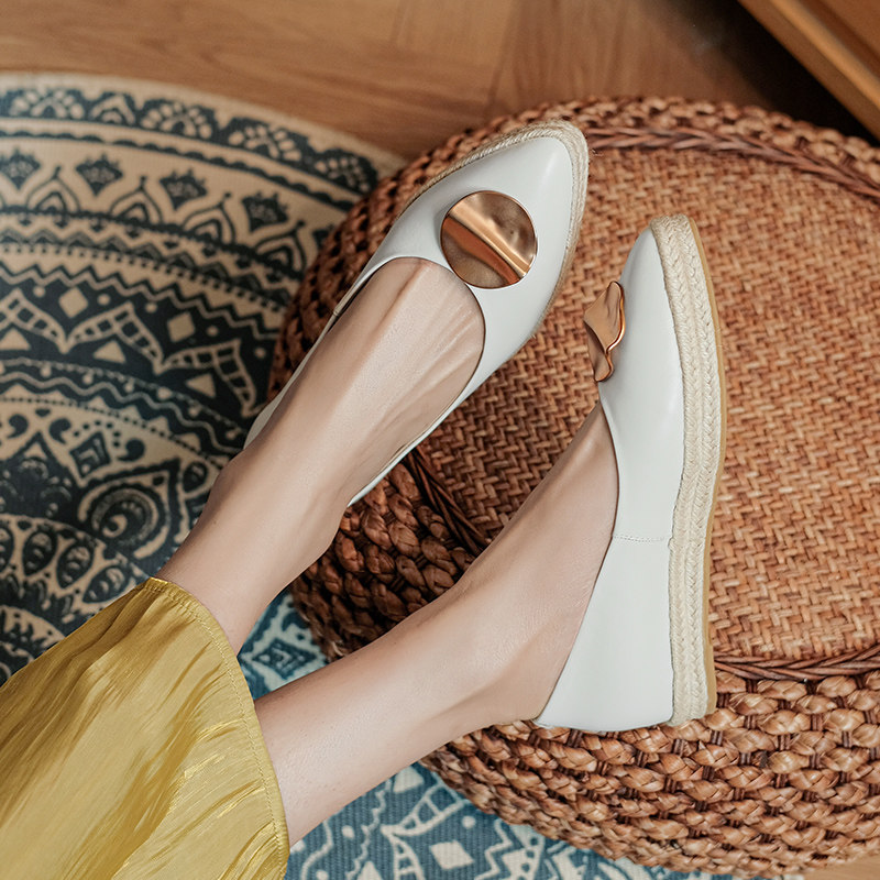 Весенняя соломенная обувь с низким вырезом на платформе, коллекция 2021, тренд сезона, из натуральной кожи, популярно в интернете