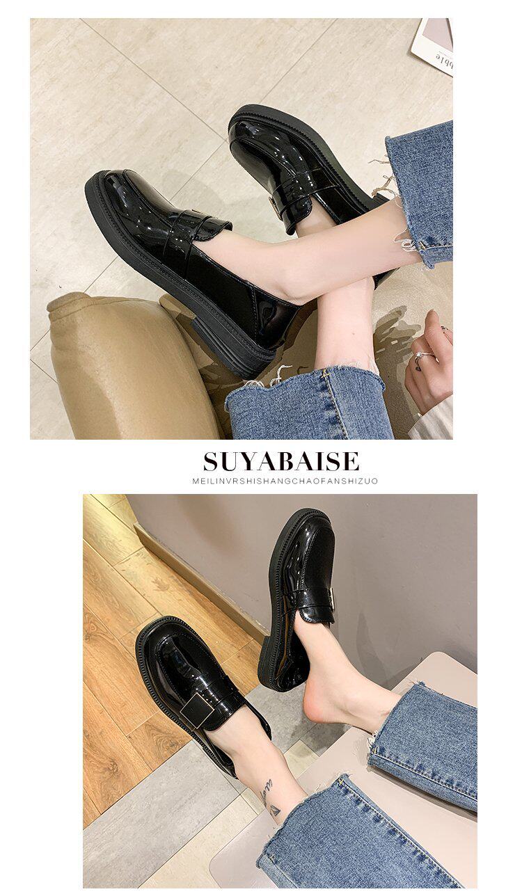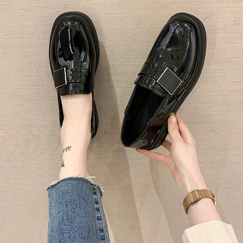 Черные маленькие кожаные туфли, новинка весны 2021 года, модные повседневные универсальные повседневные блестящие туфли в корейском стиле на одну ногу для ленивых ног