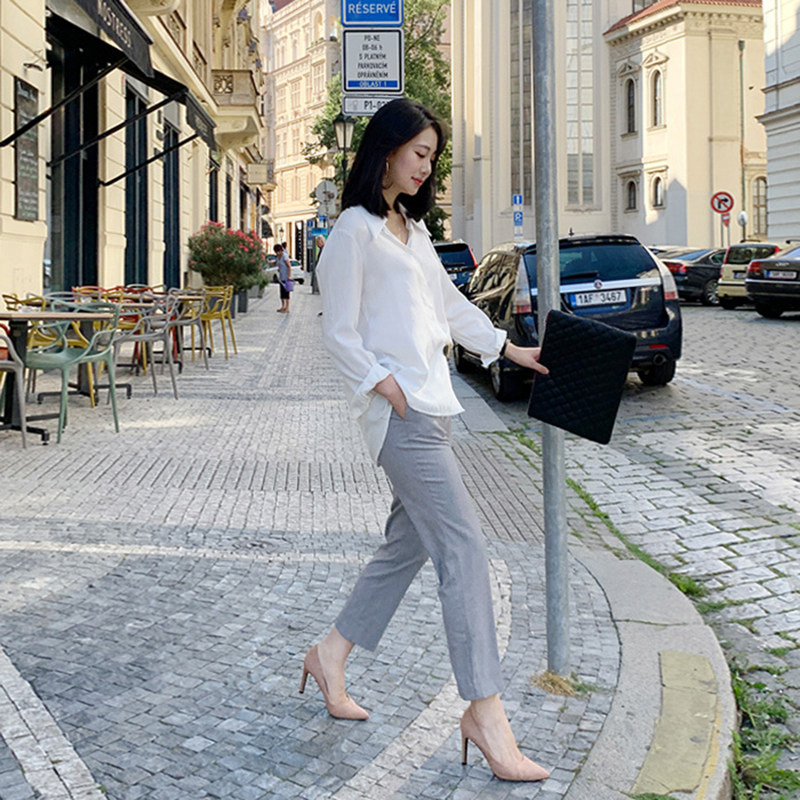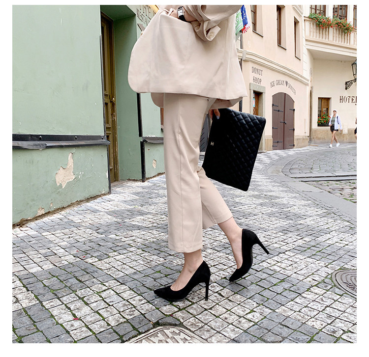 Нюдовая обувь на высоком каблуке, рабочие универсальные туфли с заостренным носом, Гонконг