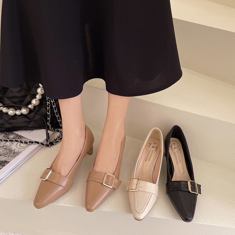 Весенние универсальные туфли на высоком каблуке с заостренным носом для кожаной обуви с низким вырезом, французский стиль, коллекция 2021, тренд сезона, европейский стиль