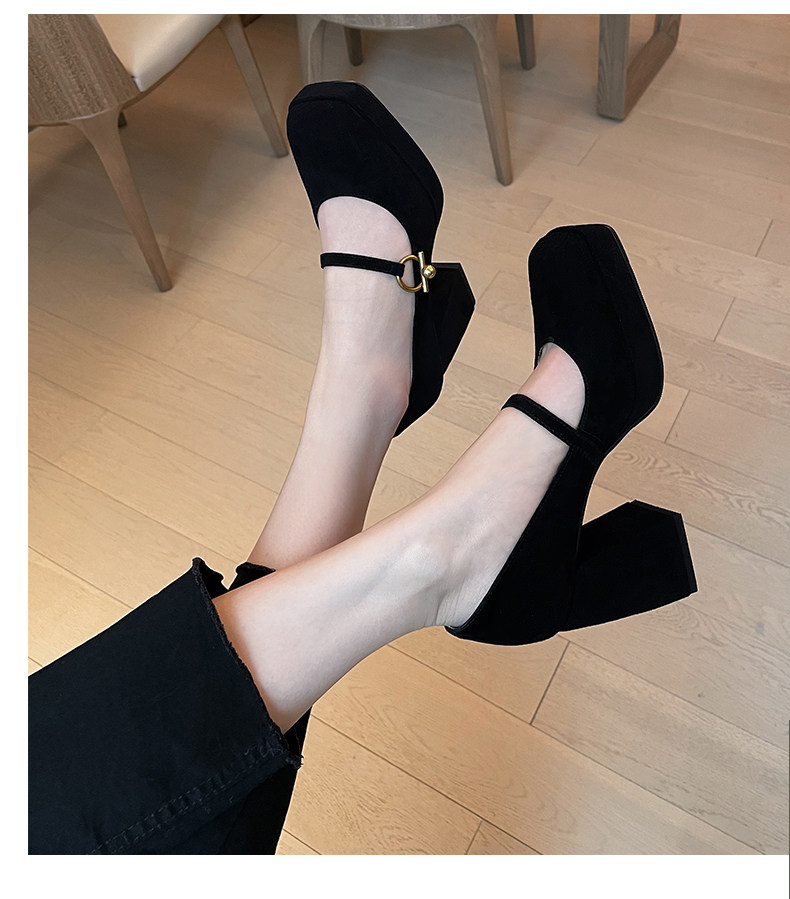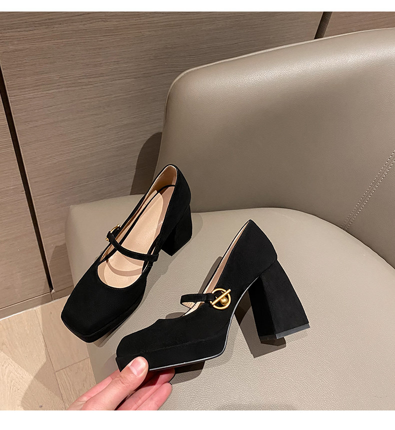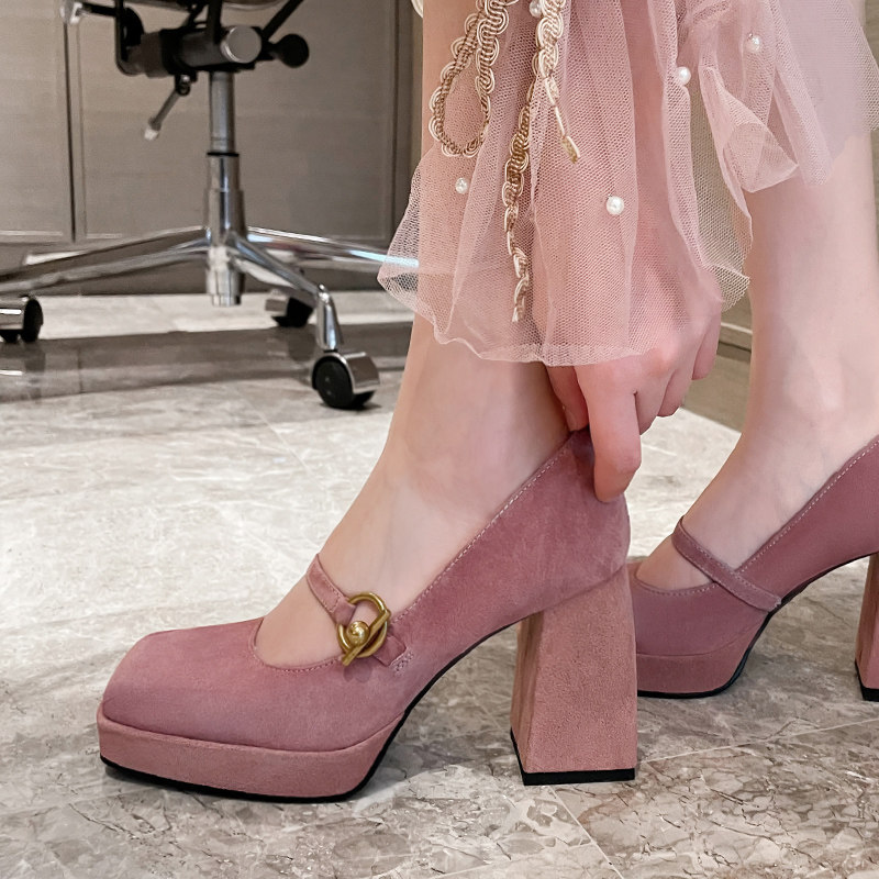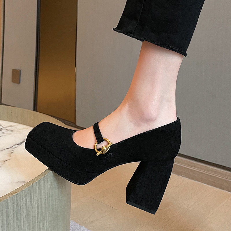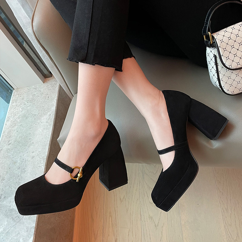 Весенняя новая кожаная грубая каблука одиночная обувь женская ретро -квадратная головка с водонепроницаемой платформой Maryzhen Ultra -High Heels