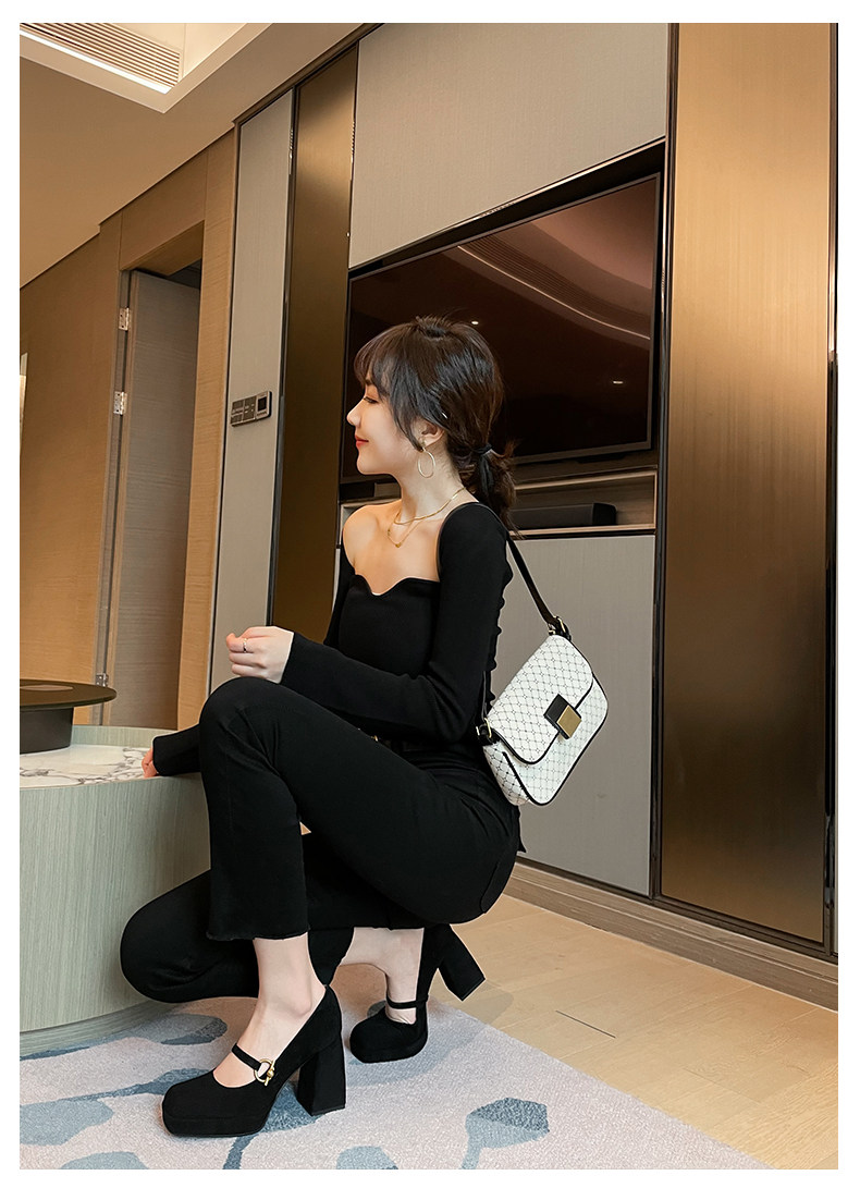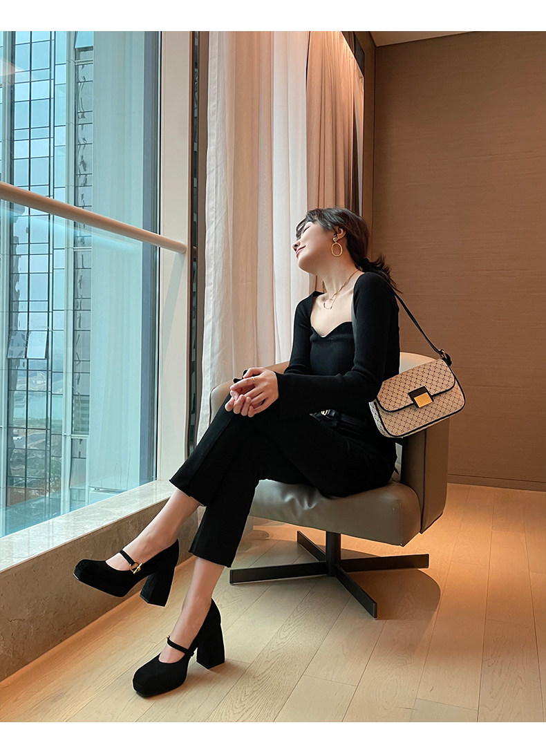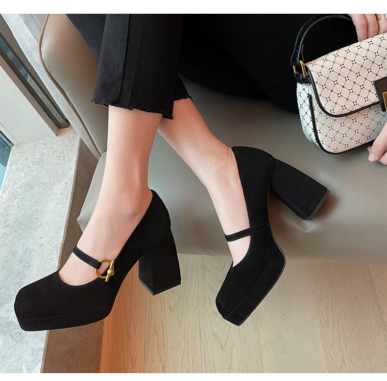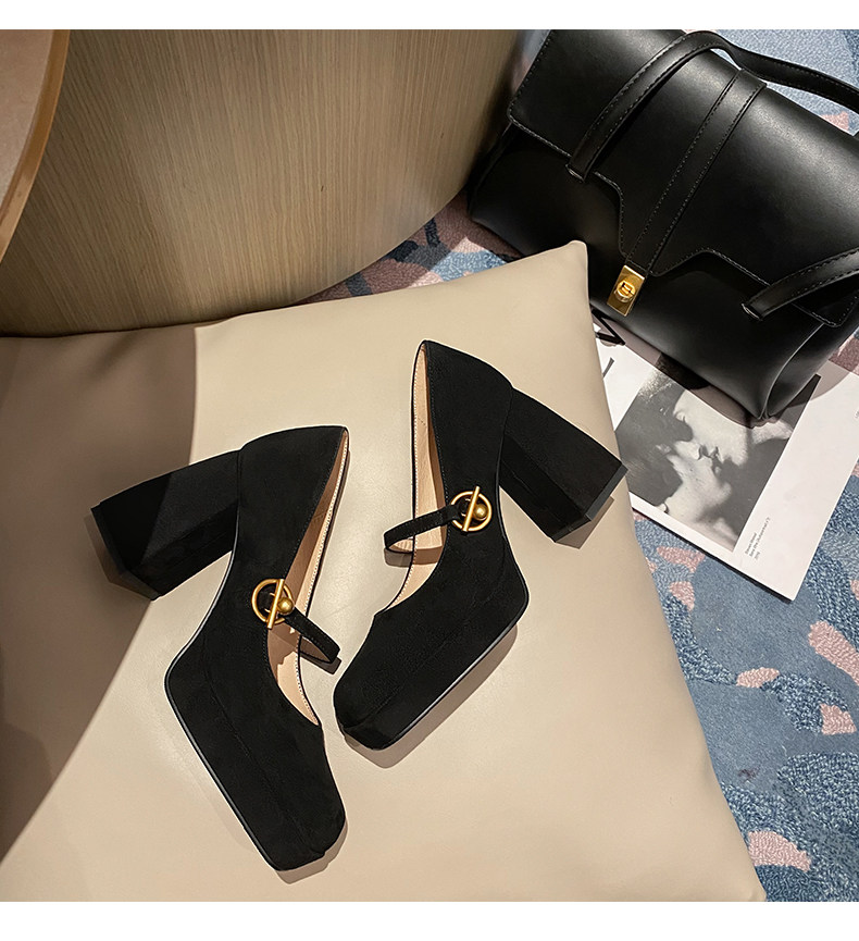 Весенняя новая кожаная грубая каблука одиночная обувь женская ретро -квадратная головка с водонепроницаемой платформой Maryzhen Ultra -High Heels