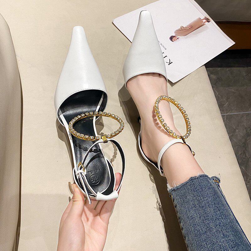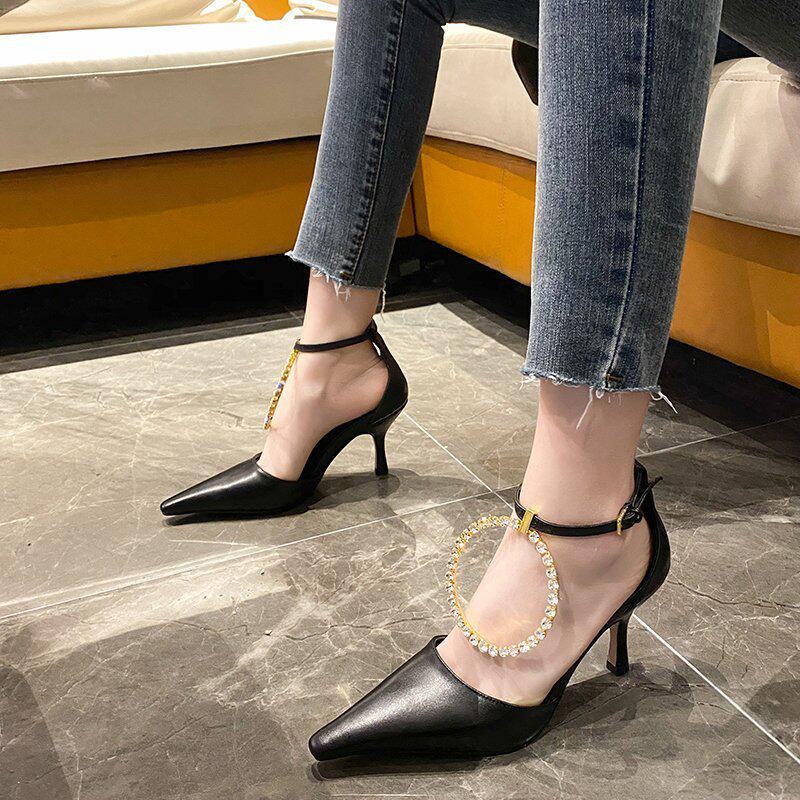 Одиночные туфли с острым носком и неглубоким горлом, весна 2021 года, новые модные универсальные туфли в корейском стиле с ремешками на шпильке, элегантные и элегантные женские туфли