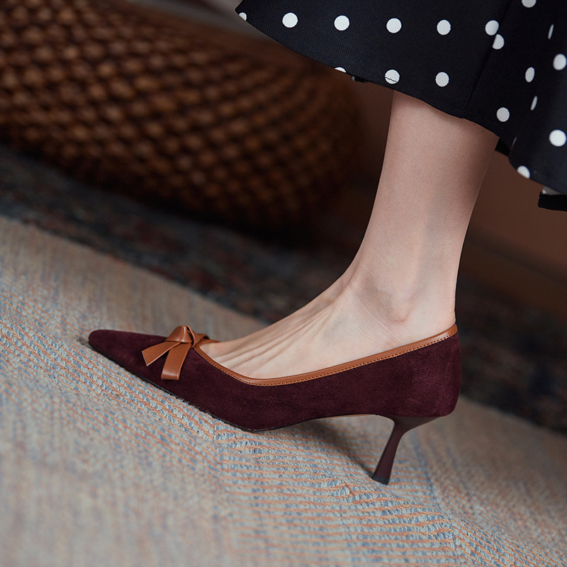 Универсальная обувь с бантиком на высоком каблуке с заостренным носом, коллекция 2022, из натуральной кожи