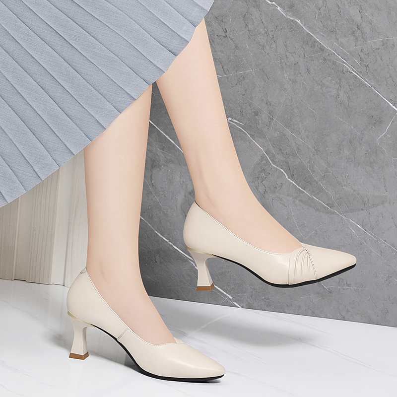 Белая обувь на высоком каблуке, универсальные туфли с заостренным носом для кожаной обуви, из натуральной кожи, коллекция 2022