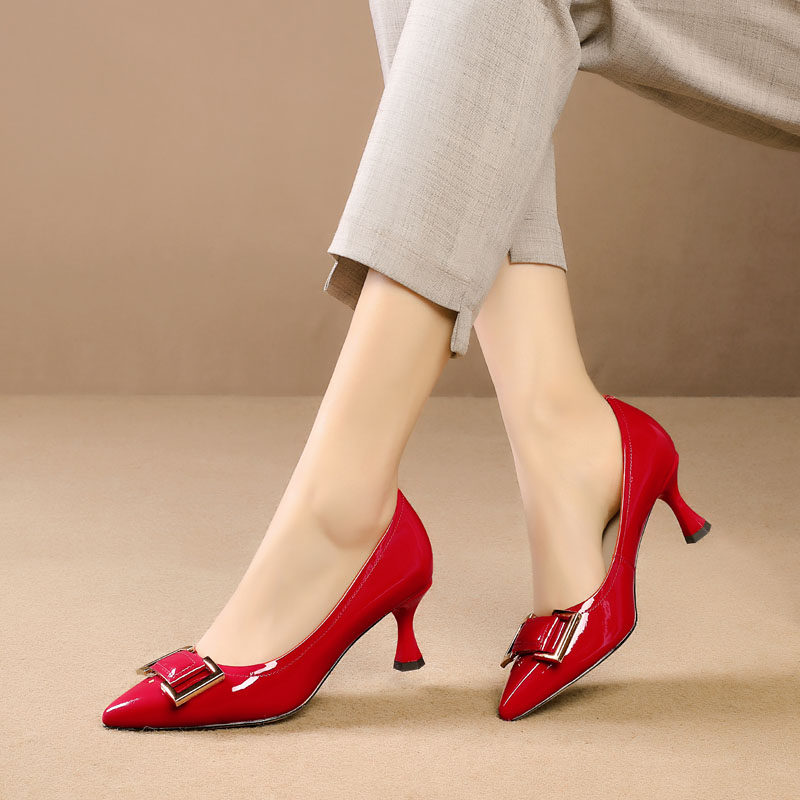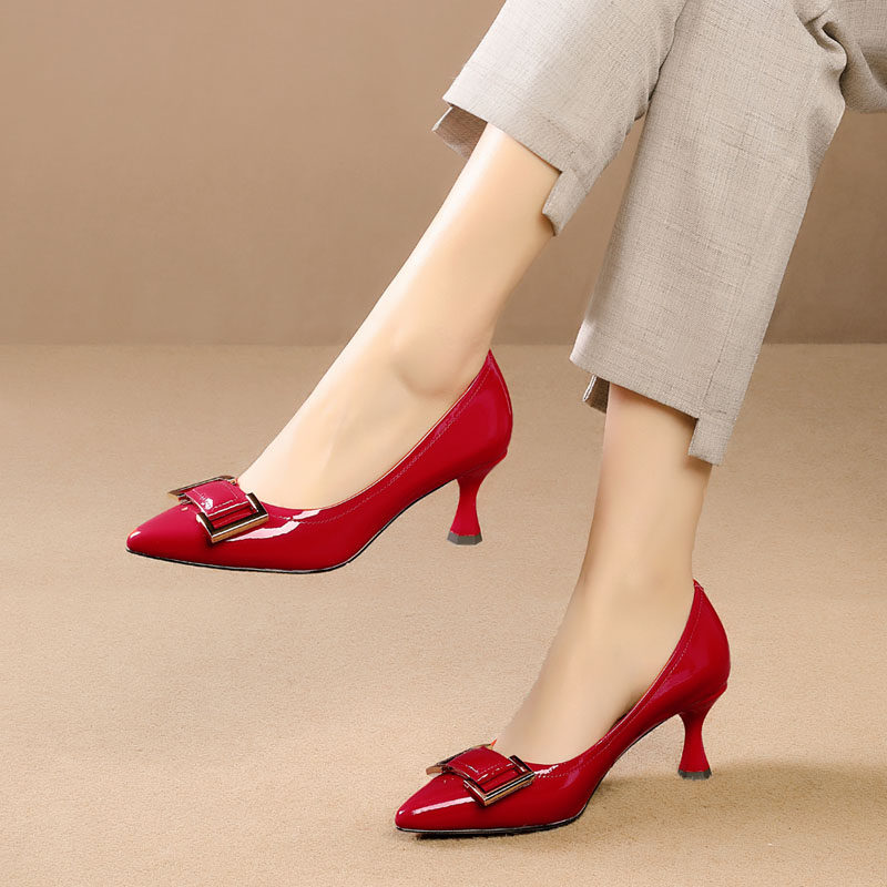 Весенняя красная обувь с заостренным носом на высоком каблуке с низким вырезом, коллекция 2021, тренд сезона, из натуральной кожи, большой размер